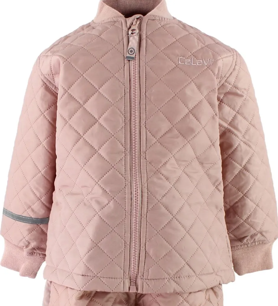 Sødt CeLaVi termotøj i støvet rosa med en quiltet struktur i stoffet.