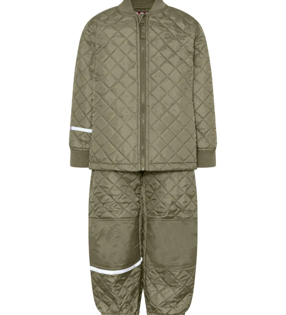 Lækkert CeLaVi termotøj i støvet grøn med quiltet struktur.