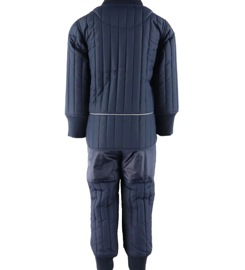 Skønt En Fant termotøj i navyblå med lodrette syninger. Sættet består af både en termojakke og et par termobukser.