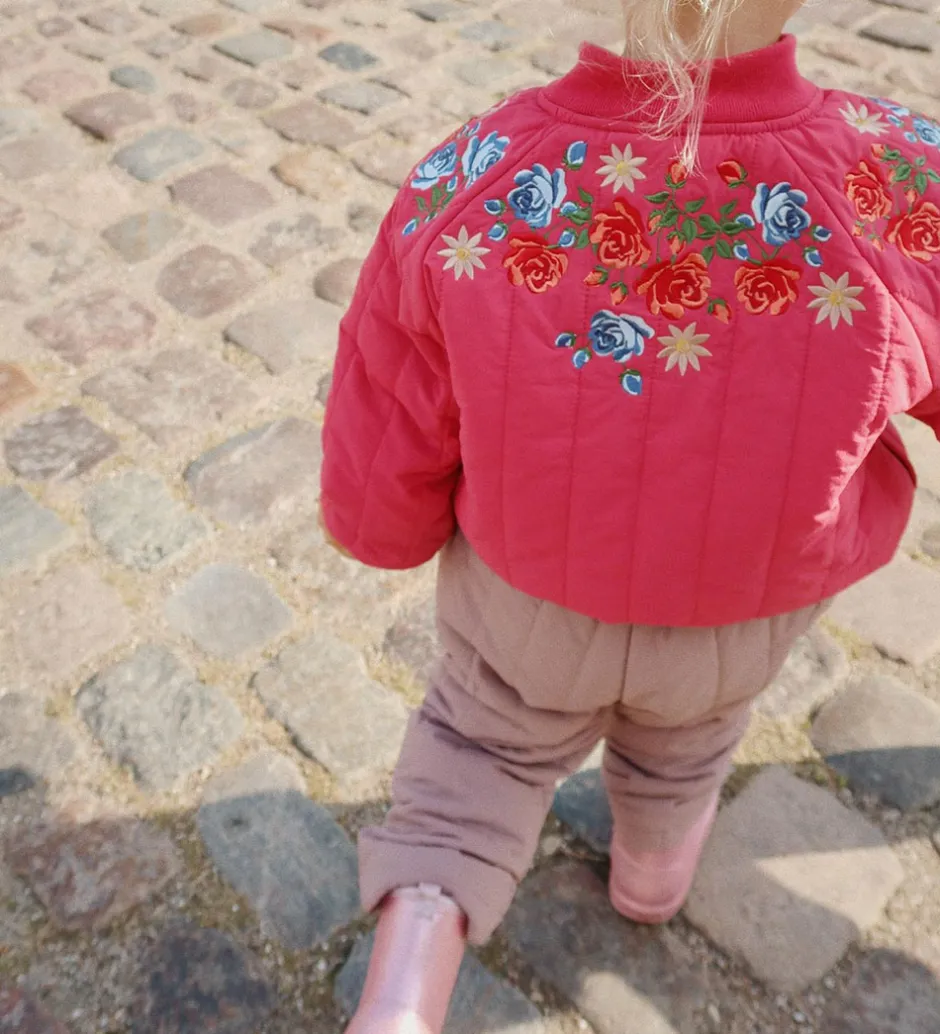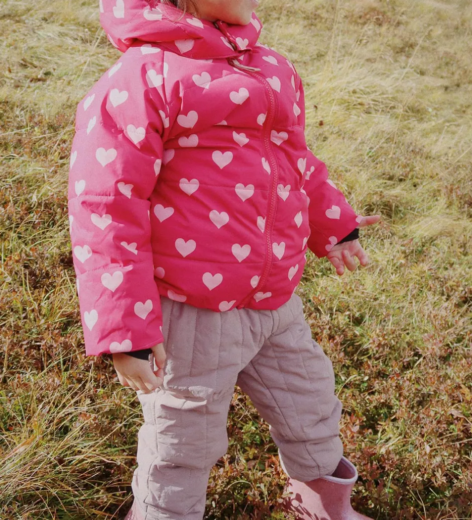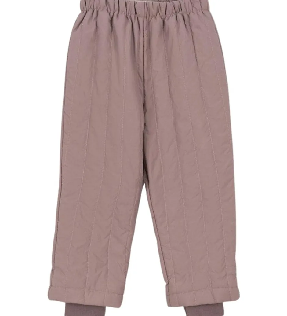 Søde Konges Sløjd termobukser i quiltet, støvet lilla. Konges Sløjd termobukserne har en god, justerbar elastikkant i livet, og praktiske ribkanter i benåbningerne, der holder vind og kulde ude.