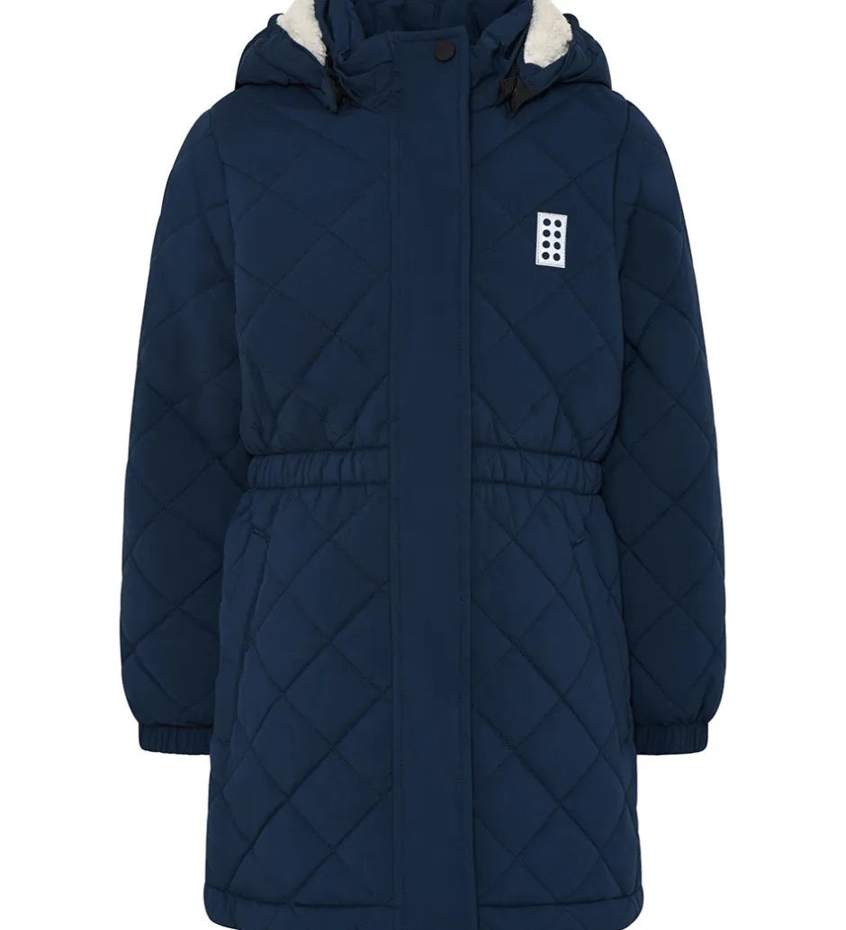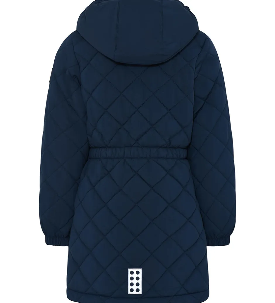 Skøn LEGO® Wear termofrakke i navyblå med en quiltet struktur. Der er en logo-refleks på venstre bryst og lænden.
