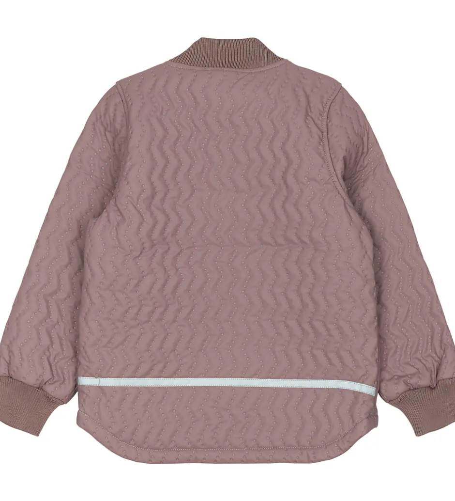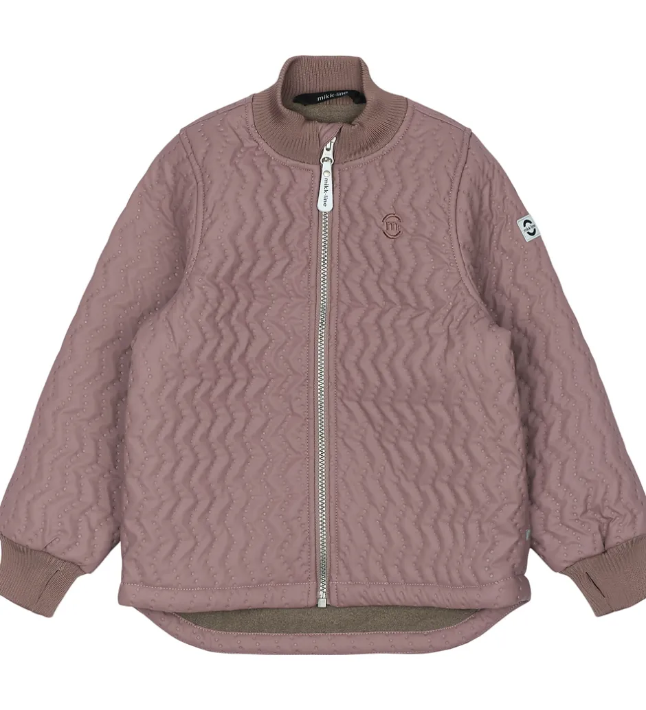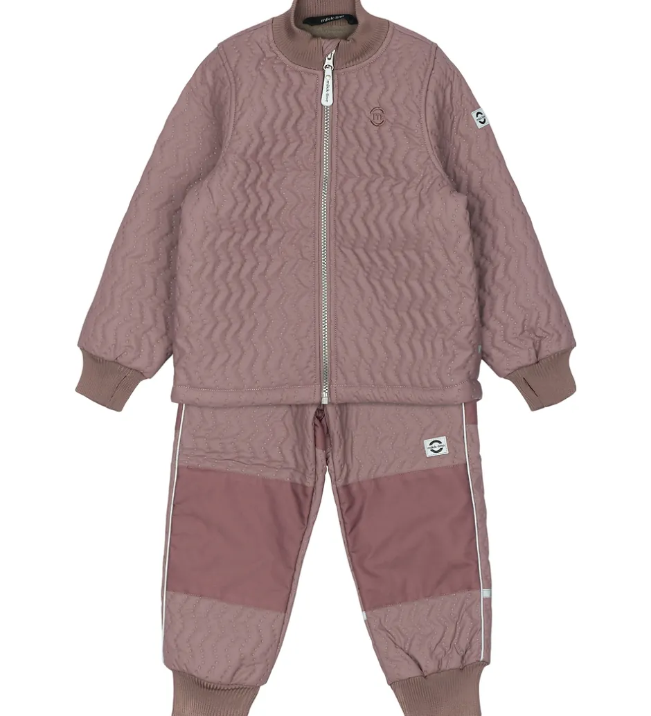 Flot Mikk-Line termotøj bestående af en termojakke og et par termobukser i støvet lilla og med en quiltet struktur.