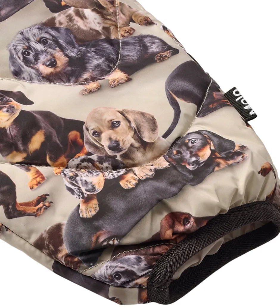 Dejlige Molo skibukser med et unikt print af forskellige hunde, der dækker hele overfladen. Skibukserne er i nuancer af beige med sorte, beige og brune detaljer og har bølgende syninger.