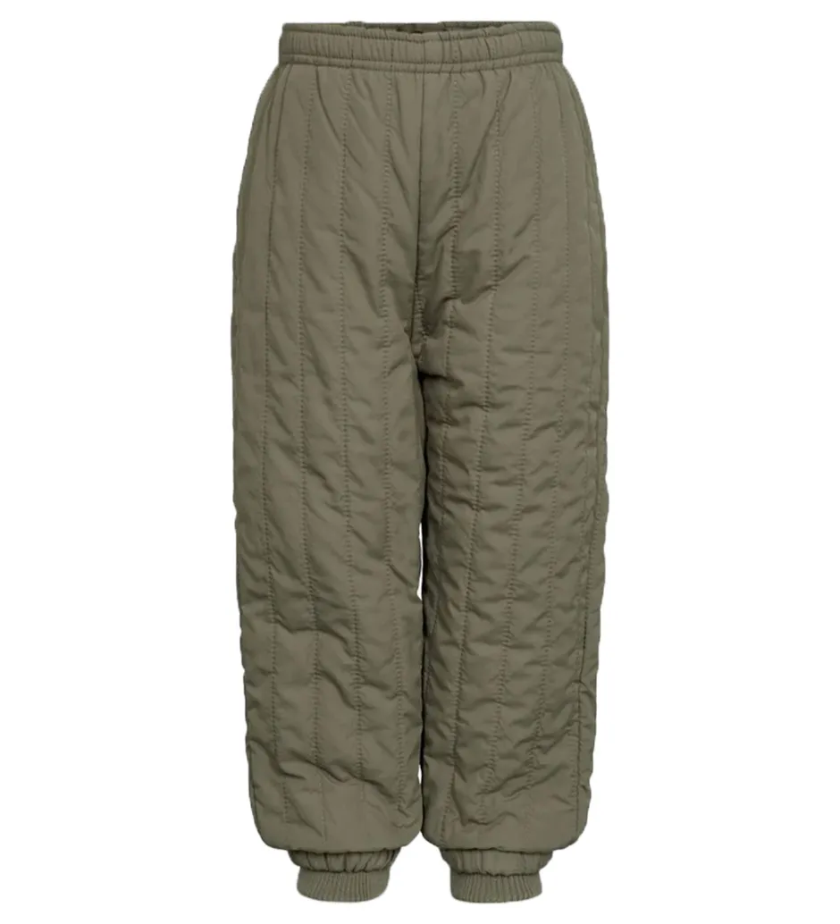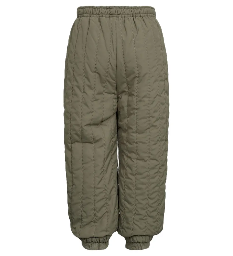 Fine Petit by Sofie Schnoor termobukser i armygrøn med en quiltet struktur.
