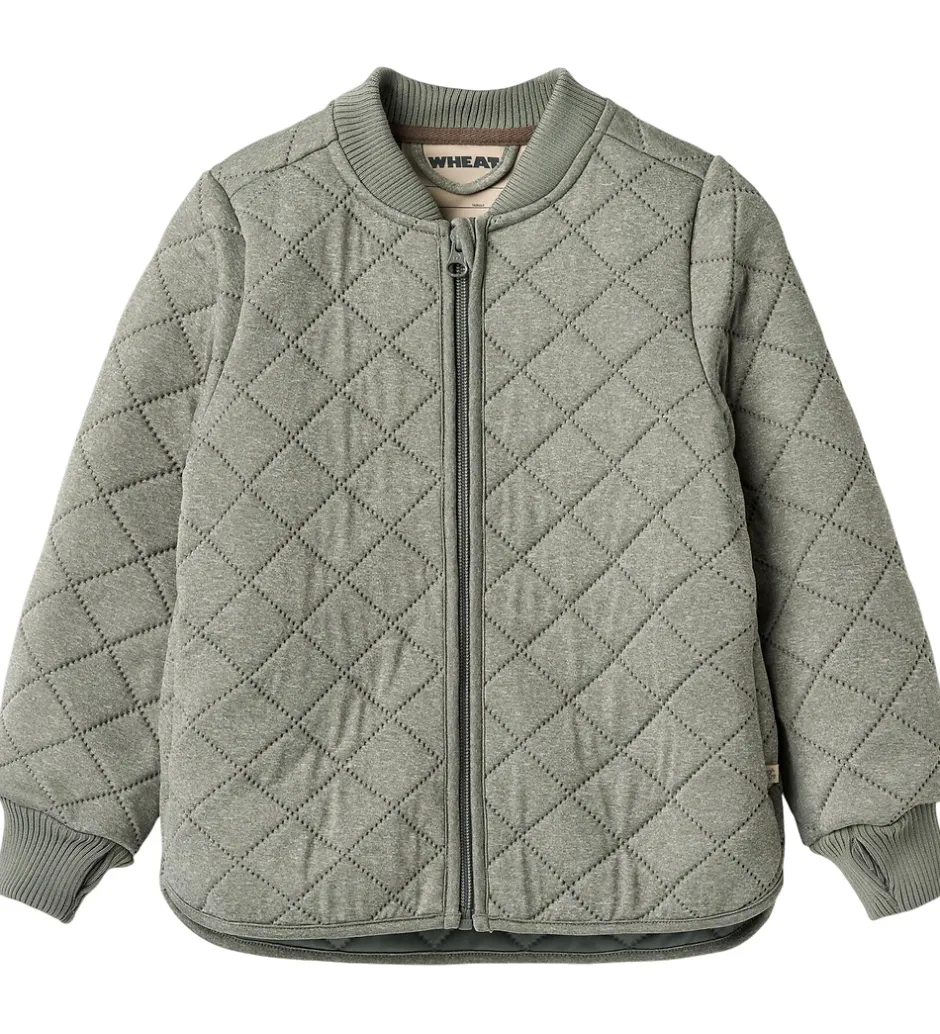 Lækker Wheat termojakke i ensfarvet, meleret grå. Termojakken har en quiltet struktur.