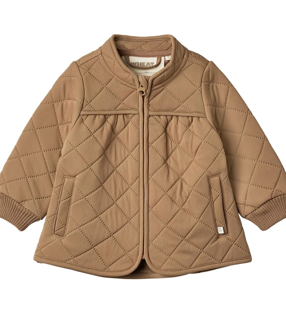 Flot Wheat termojakke i nøddebrun med en quiltet struktur.