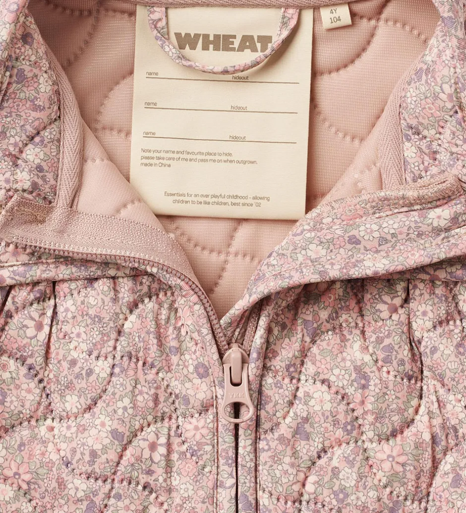 Lækker Wheat termojakke i rosa med et alloverblomsterprint og med en bølgende, quiltet struktur.