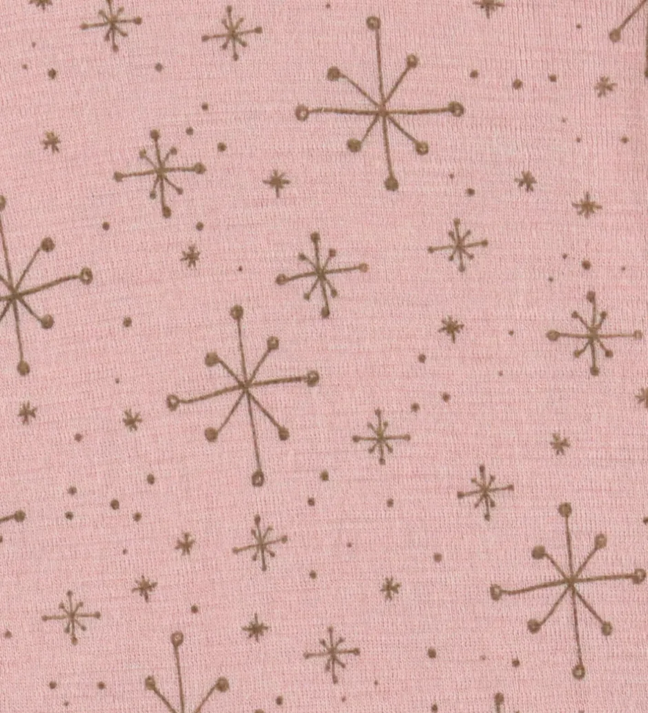Charmerende Joha tuben i en blød rosa farve, dekoreret med et fint stjernemønster. Joha tuben har en enkel pasform, der ikke sidder for stramt. Materialet virker behageligt og er velegnet til daglig brug. En lille farverig detalje i siden tilføjer et unikt præg. Tuben er syet med omhyggelig finish, der sikrer holdbarhed.