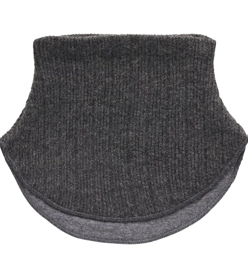 Fin Melton halsedisse i en strikket uldblanding i meleret mørkegrå på ydersiden og i meleret mørkegråt, glatvævet bomuld på indersiden.