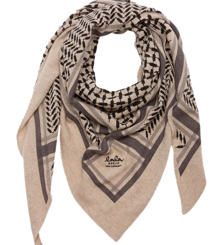 Skønt Lala Berlin tørklæde i beige med det klassiske Kufiya mønster i sort.