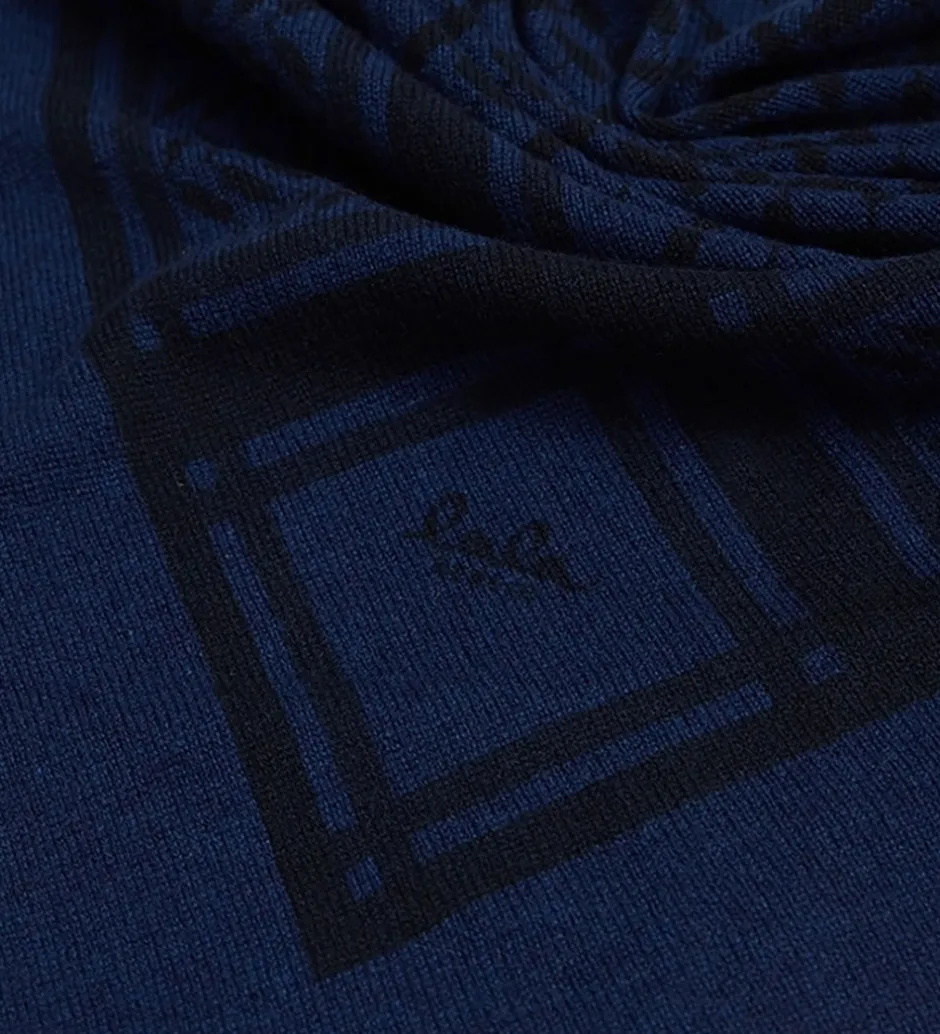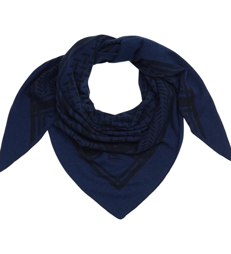Lækkert Lala Berlin tørklæde i mørk navy med det klassiske Kufiya mønster i sort.