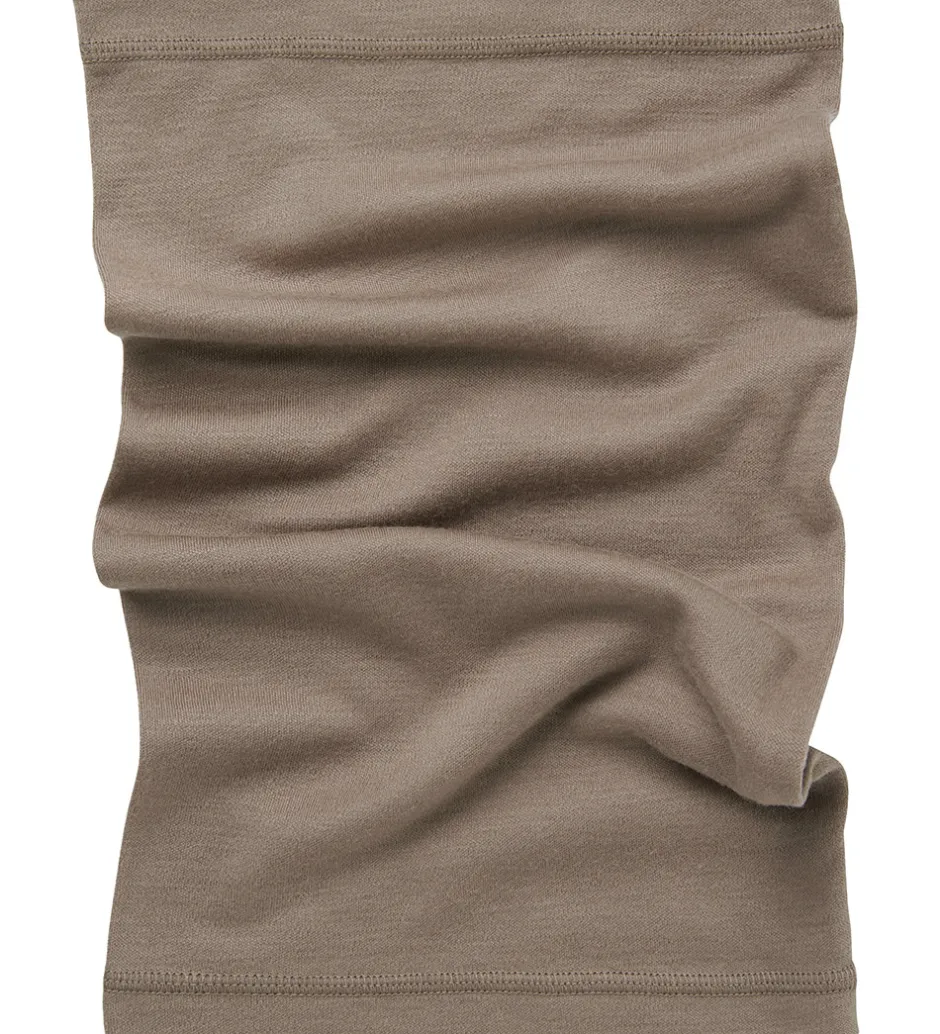 Skønt Name It tubetørklæde i gråbrun. Name It tubetørklædet har et enkelt design, og trækkes over hovedet for at give halsen varme. Det er fremstillet af 100% merinould.