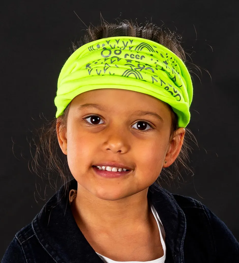 Smart Reer tubetørklæde i neon gul med et sejt mønster i sølv.