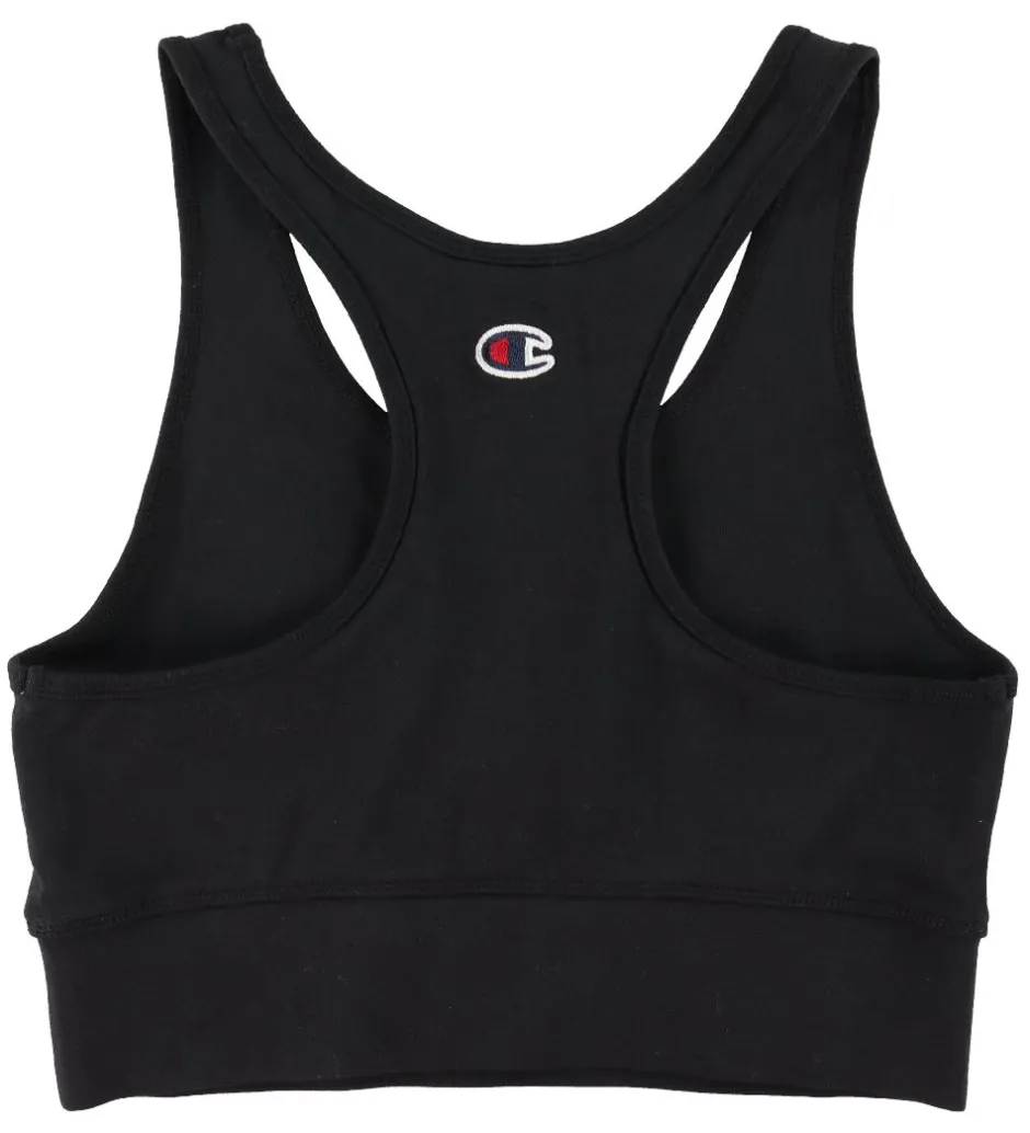 Flot Champion Fashion top i sort med et broderet logo i navy, rød og hvid i på ryggen.