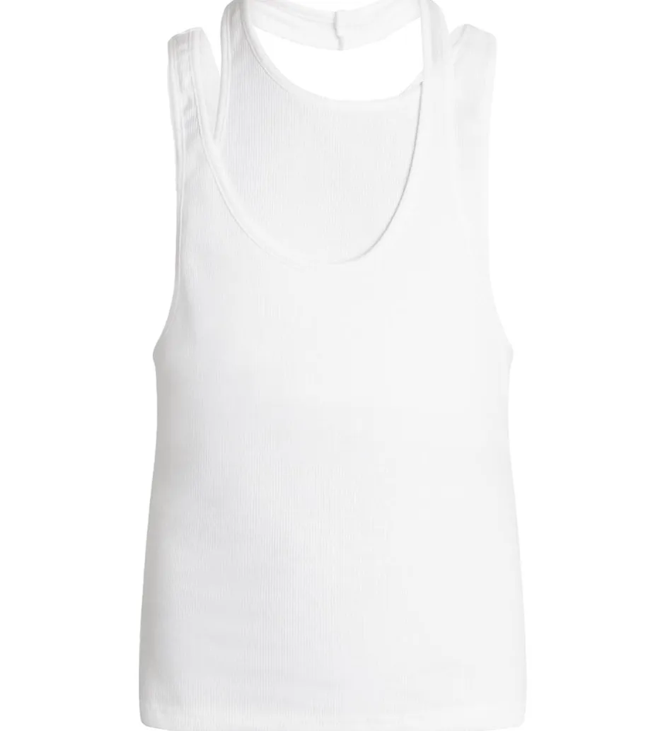 Flot Grunt top i hvid med ribstruktur.