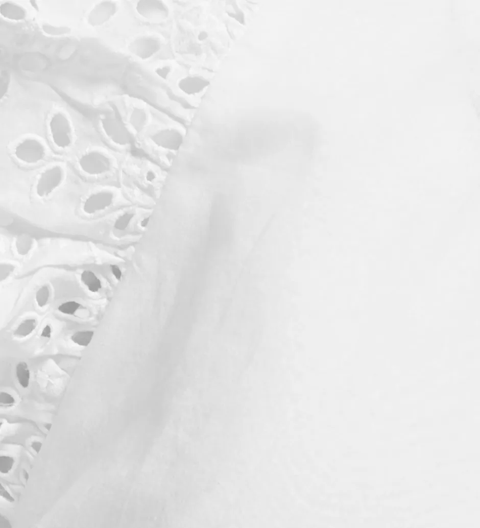 Kids Only toppen har en rund halsudskæring og brede skulderstropper med en bred flæsekant med et fint broderet mønster langs ærmegab, som udgør et lille ærme. Toppen kan lukkes i nakken med knap, og midt på ryggen er der elastik, der sikrer en god pasform.