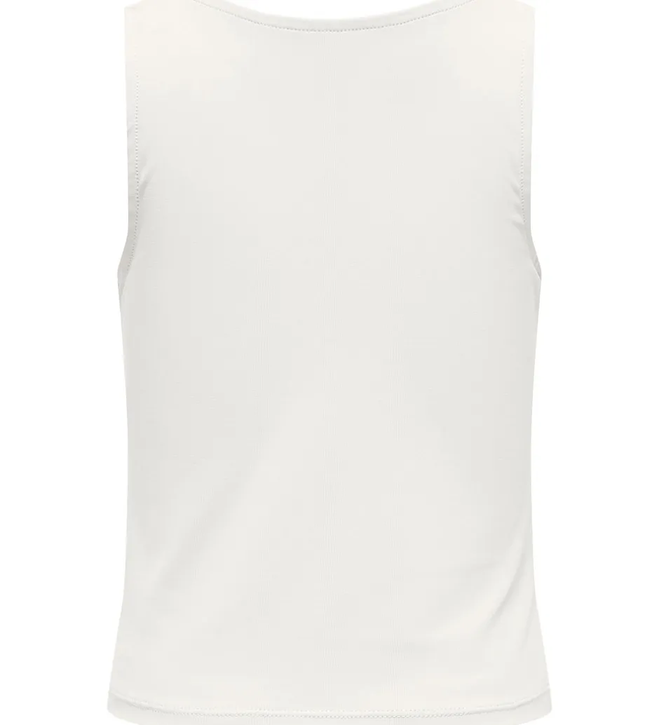 Kids Only toppen er helt uden ærmer og den har brede skulderstropper. På den ene side har den en dyb, kantet udskæring og på den anden side har den en høj udskæring. Toppen har et vendbart design, så man selv kan bestemme om den dybere udskæring skal være fronten eller ryggen.