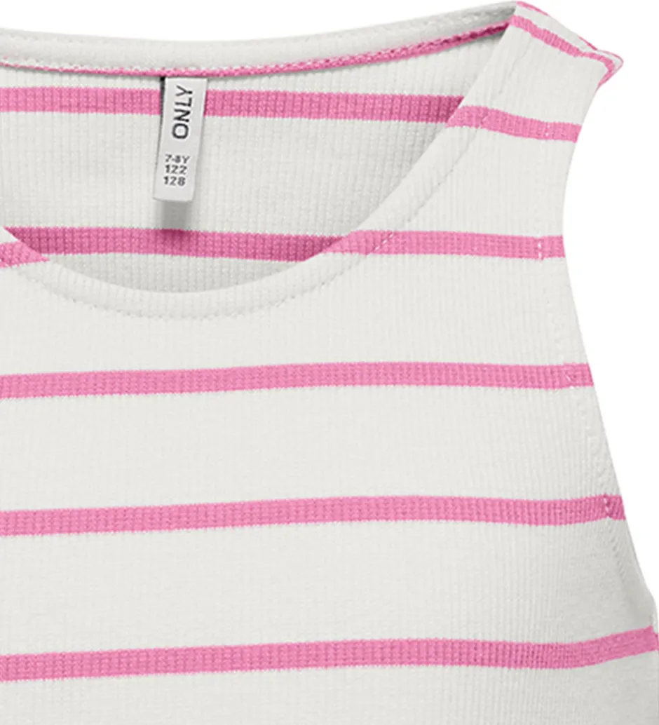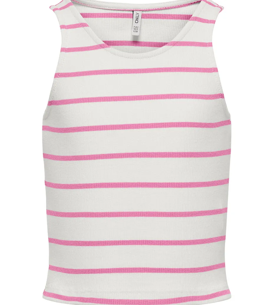 Frisk Kids Only top i hvid med rosa striber og en lækker ribstruktur. Den har et enkelt og stilrent design, der gør den let at kombinere med forskellige outfits og aktivt brug.