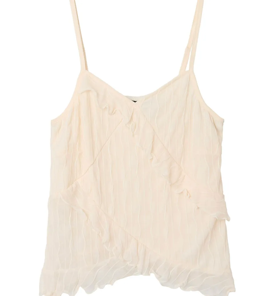 Elegant LMTD tanktop i en lys rosa nuance med et flot, bølget mønster. LMTD tanktoppen har smalle, justerbare stropper og fine flæsedetaljer, der giver et stilfuldt udtryk til ethvert outfit.