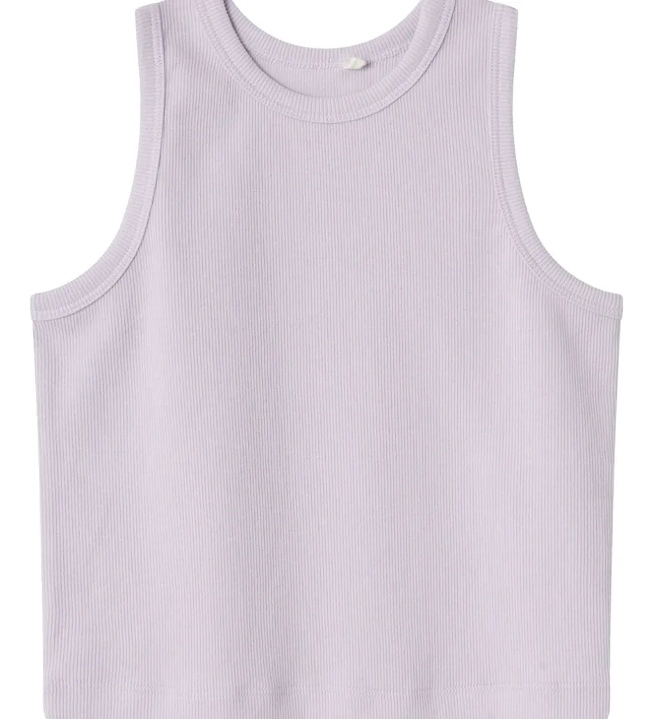 Skøn Name It top i ensfarvet lyselilla med ribstruktur.