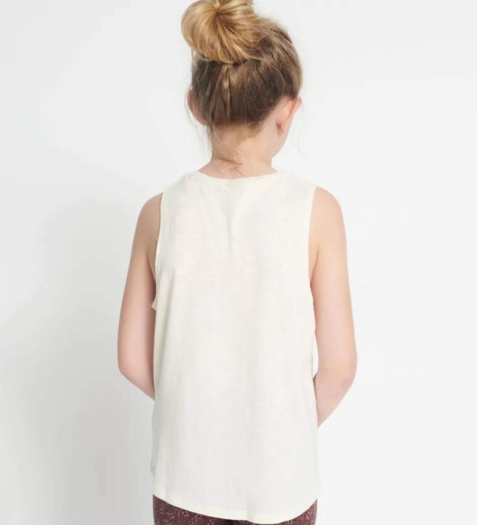 Rethinkit top er helt uden ærmer, og den har et flot A-snit, som giver en god vidde.