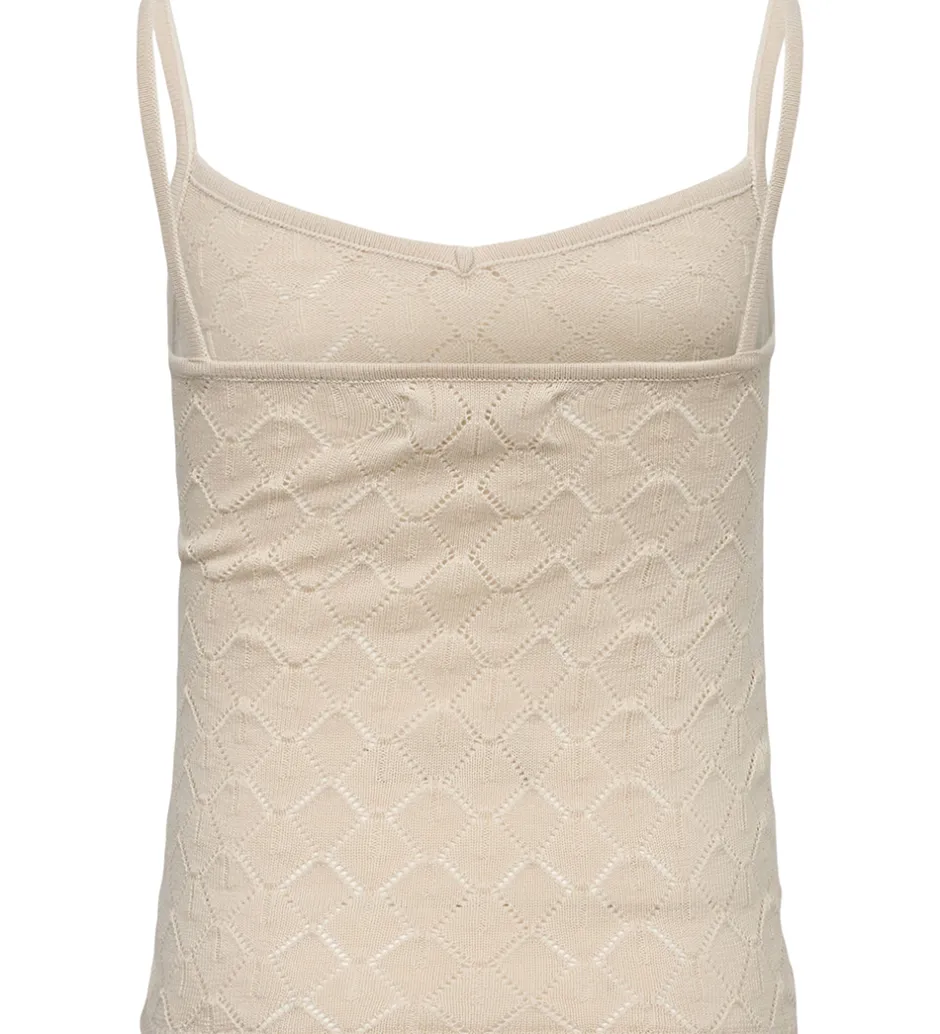 Flot Sofie Schnoor top i cremehvid med et elegant hulmønster af geometriske diamanter, der giver toppen et stilfuldt og moderne udtryk.