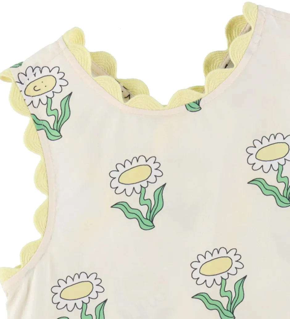 Stella McCartney Kids toppen er helt uden ærmer, og den har flotte, bølgende kanter i lysegul. Toppen er åben i ryggen, og den holdes sammen med to små knapper. Toppen er lavet i en let, fastvævet bomuldkvalitet.