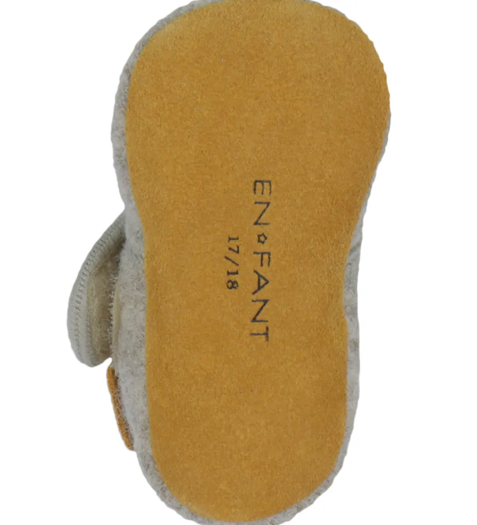 Fine En Fant hjemmesko i gråbeige uld med en broderede hjerter på foden.