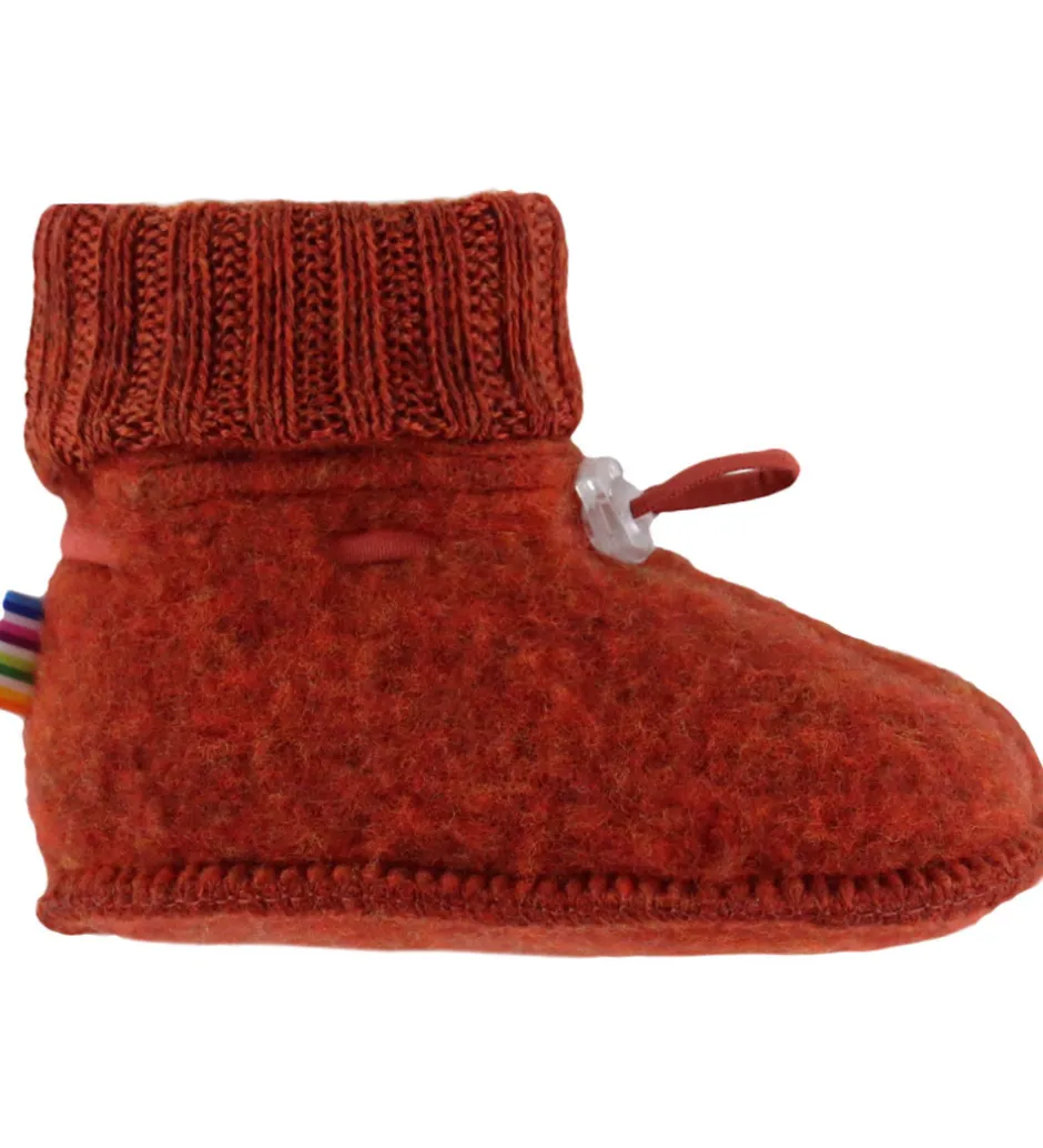 Joha futterne er fremstillet af en kraftig, filtet merinouldskvalitet, der kan holde barnets fødder dejlig varme på de kølige dage.