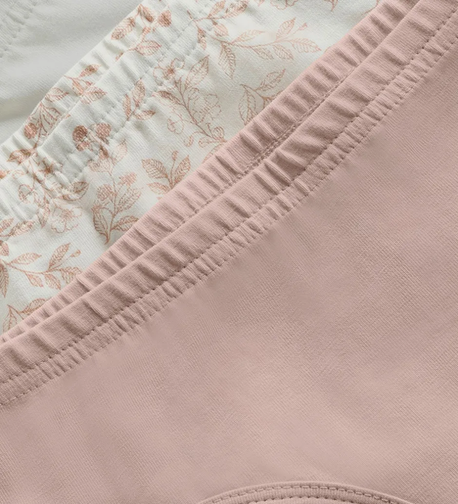 Flotte CeLaVi trusser solgt i en 3-pak. Trusserne er hhv. ensfarvet rosa, ensfarvet hvid og hvid med print af bær, blomster og blade i rosa. CeLaVi trusserne har en elastikkant i taljen, som sikrer en behagelig pasform.