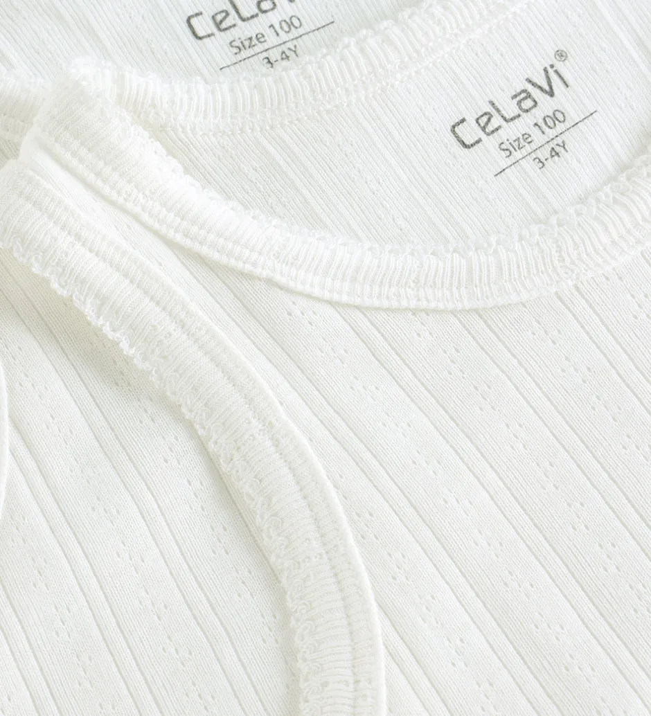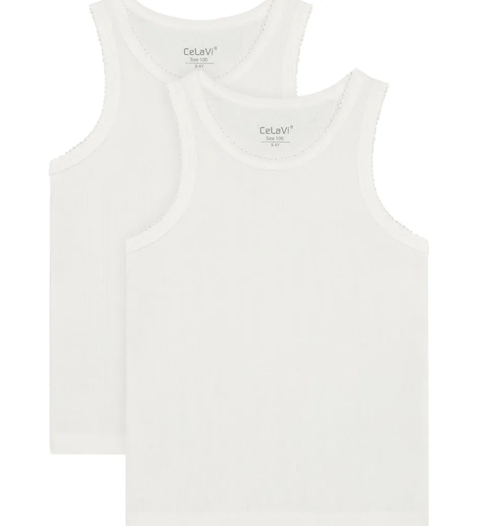 Fine CeLaVi undertrøjer solgt i en 2-pak i hvid med flot hulmønster. Undertrøjerne har brede skulderstropper og er fremstillet i en blød kvalitet.