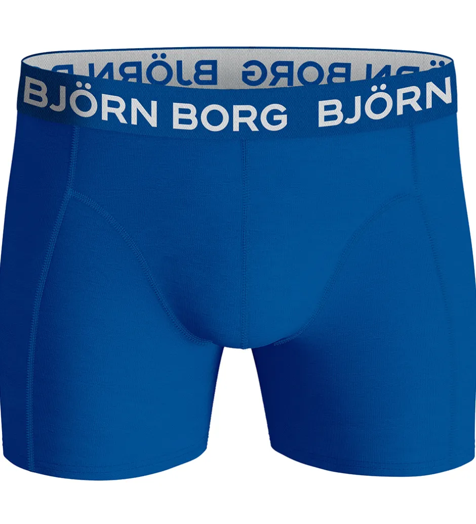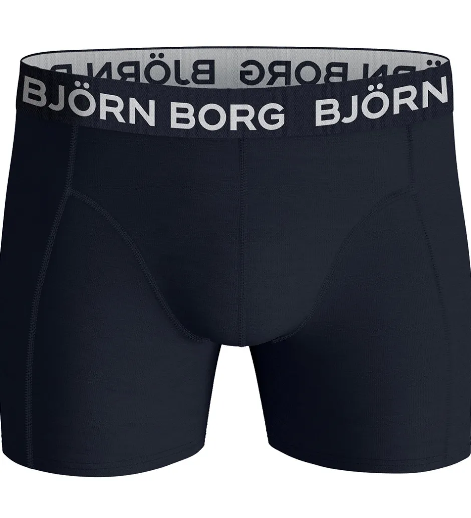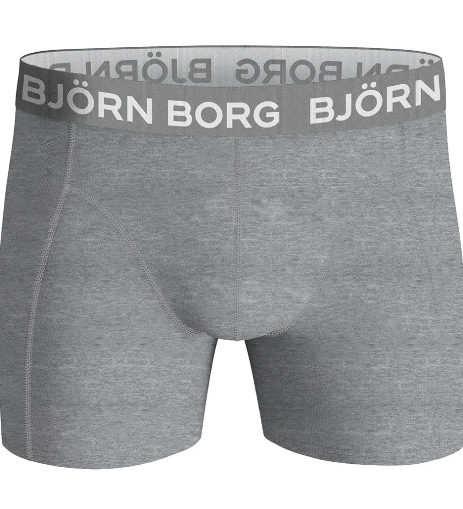 Stilfulde Björn Borg boxershorts sort, grå og blå nuancer solgt i en 5-pak, designet med en bred elastisk kant med logo. Praktisk og behagelig pasform, perfekt til daglig brug.