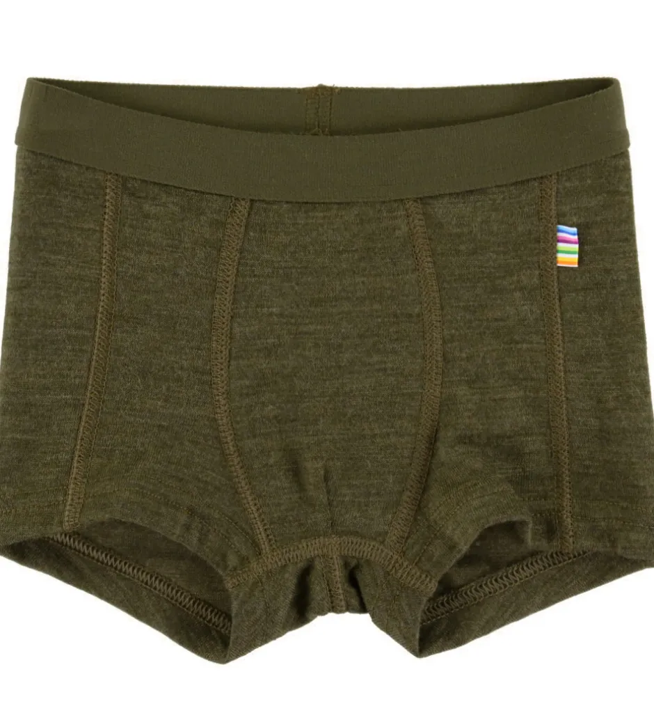 Indbydende Joha boxershorts i en dyb grøn farve med en ensfarvet overflade, der skaber et tidløst look. Joha boxershorts er designet med en elastisk kant i livet, der sikrer en god pasform. De har et enkelt dekorativt regnbuetag på siden, og syningerne fremstår diskrete og velplacerede for et enkelt udtryk.