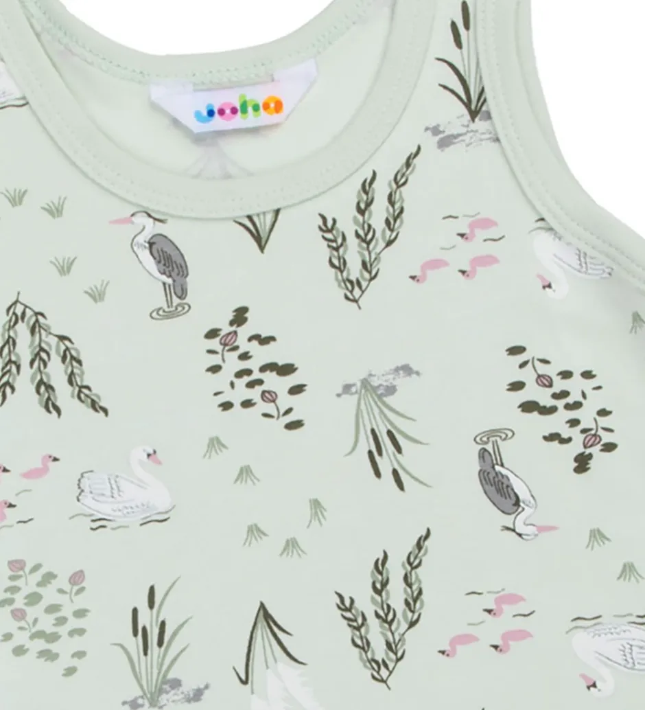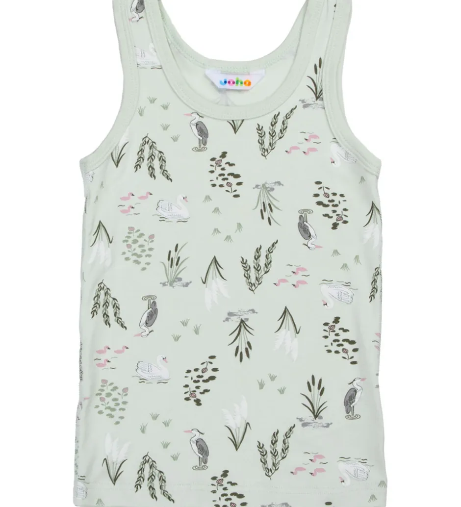 Sød Joha undertrøje i en lys grøn farve og et fint print af fugle og planter, der skaber et friskt udtryk.
