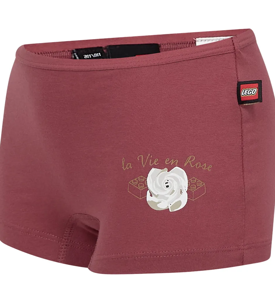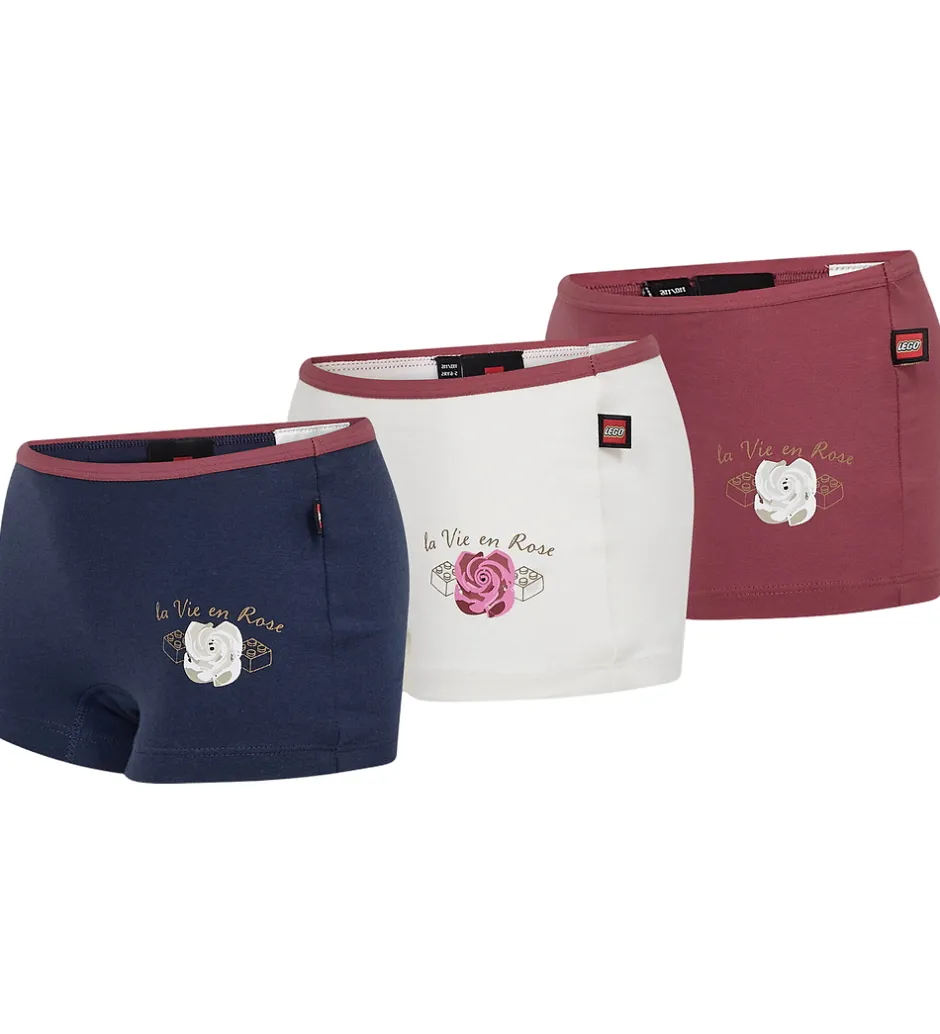Flotte LEGO® Wear hipsters i en 3-pak med tre forskellige farver, hver med et fint rose-motiv omgivet af klodser og teksten “la Vie en Rose”. Øverst er der en smal elastikkant, som sikrer en behagelig pasform.