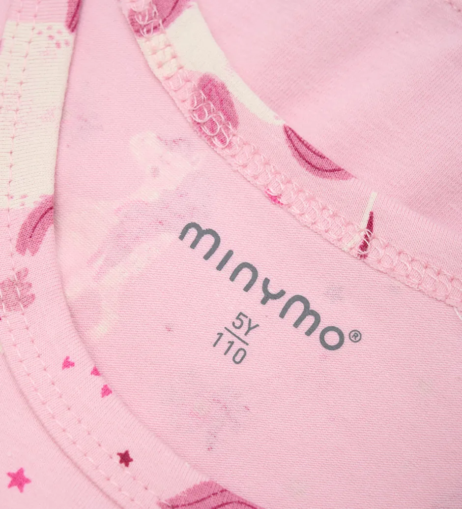 Dejligt Minymo undertøj i en lys rosa. Overdelen har et charmerende enhjørningeprint, mens underdelen er ensfarvet. Minymo kombinerer komfort og stil i dette sæt, der sikkert vil begejstre.