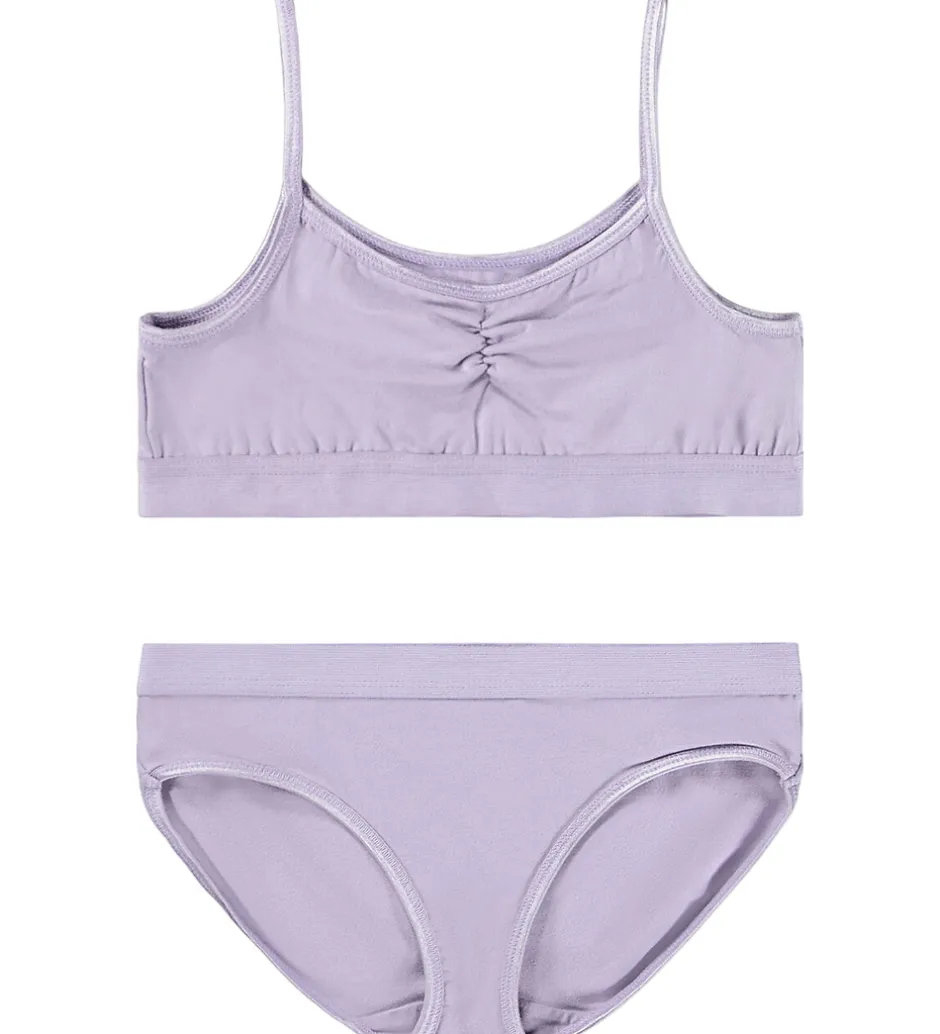 Behageligt Molo undertøj i en smuk lys lilla nuance. Molo sættet består af en top med smalle stropper og et par matchende trusser, som sikrer en komfortabel pasform.