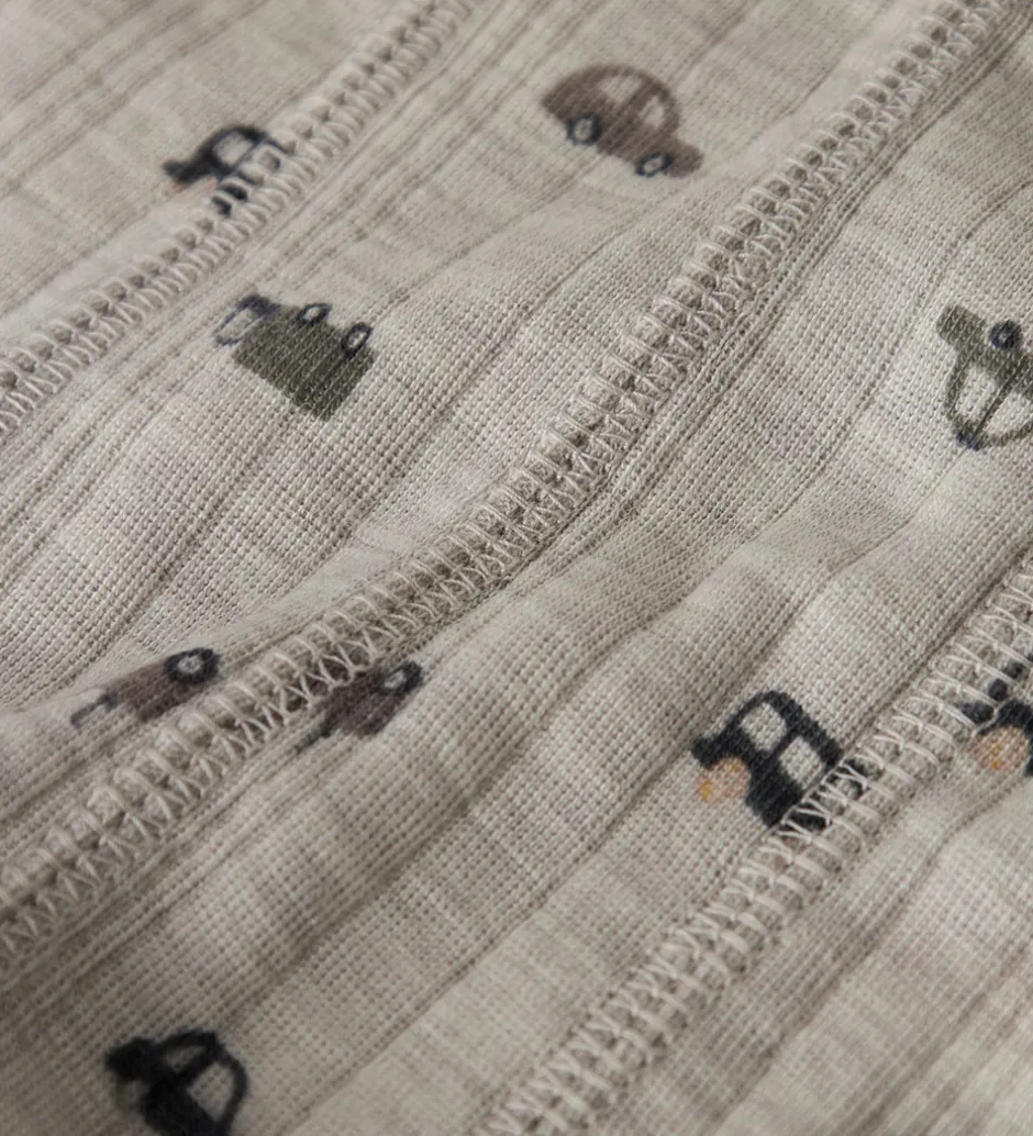 Smarte Name It boxershorts i gråbeige med print af biler i blå, grønne og brune nuancer. Boxershortsene har fin ribstruktur og en god elastik i taljen, som sikrer en behagelig pasform. De er fremstillet i blødt og åndbart merinould.