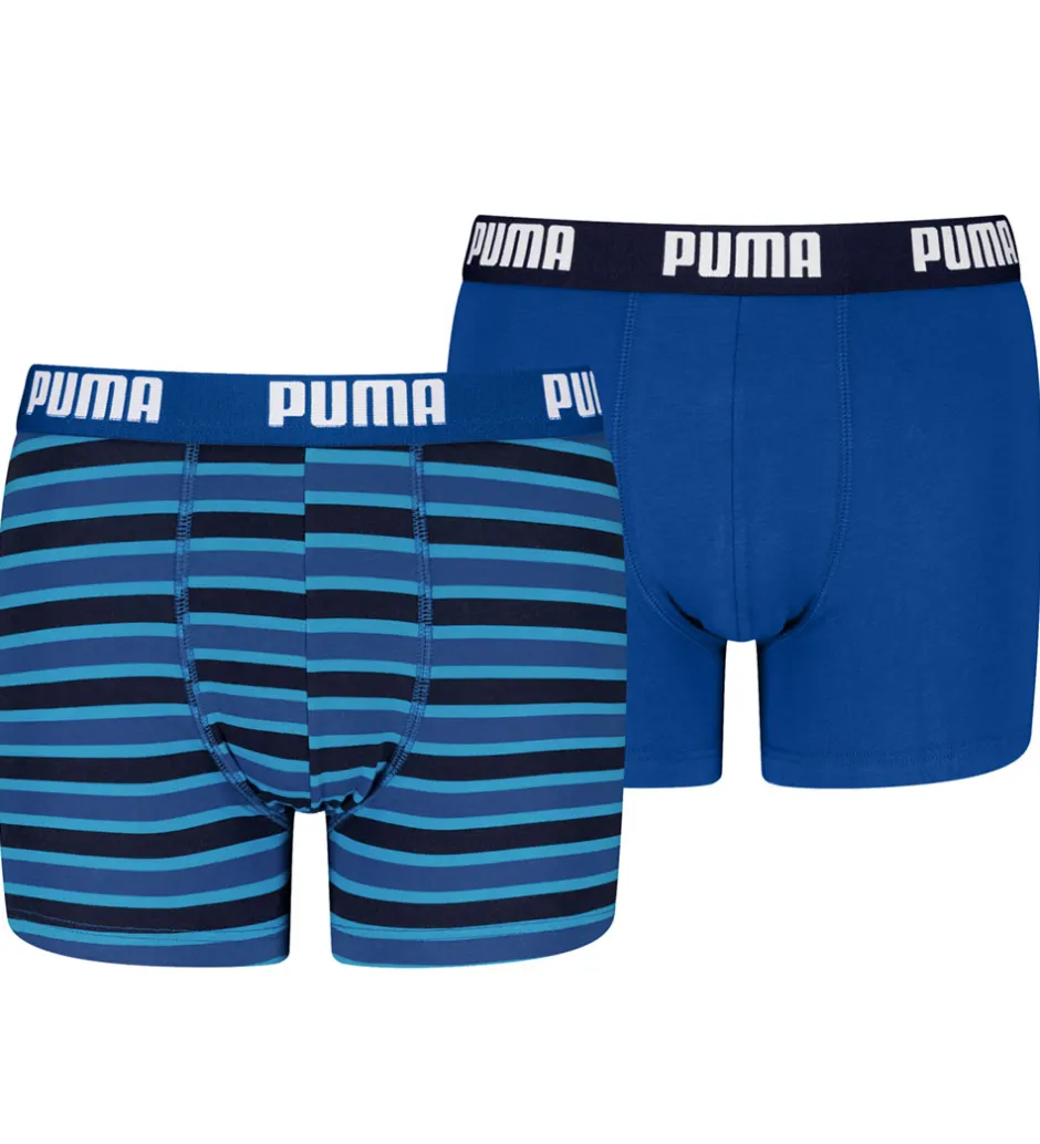 Praktiske Puma boxershorts solgt i en 2-pak. Et par i en dyb blå nuance og et par med et stilrent stribet mønster. Begge par har Puma’s logo på elastikken for et sporty look.