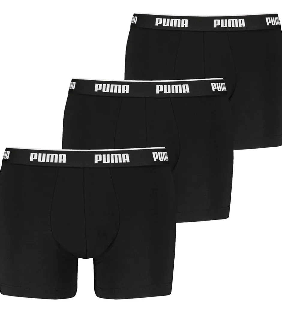 Smarte Puma boxershorts solgt i en 3-pak i ensfarvet sort med en elastikkant med teksten “Puma” i hvid.
