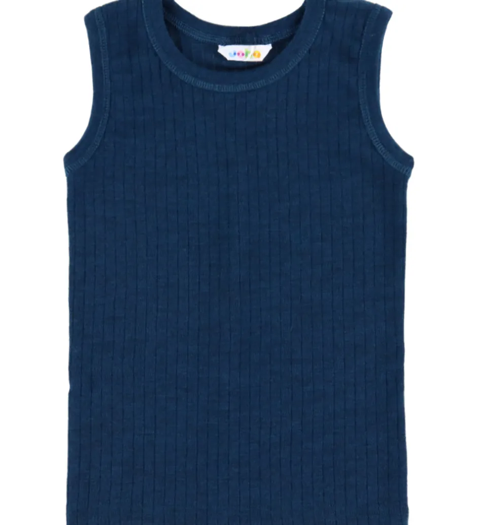 Flot Joha undertrøje i en dyb, blå farve. Undertrøjen har en fin ribstruktur, der tilføjer et enkelt, men stilrent udtryk. Designet er uden ærmer, hvilket giver en klassisk stil til Joha undertrøjen.