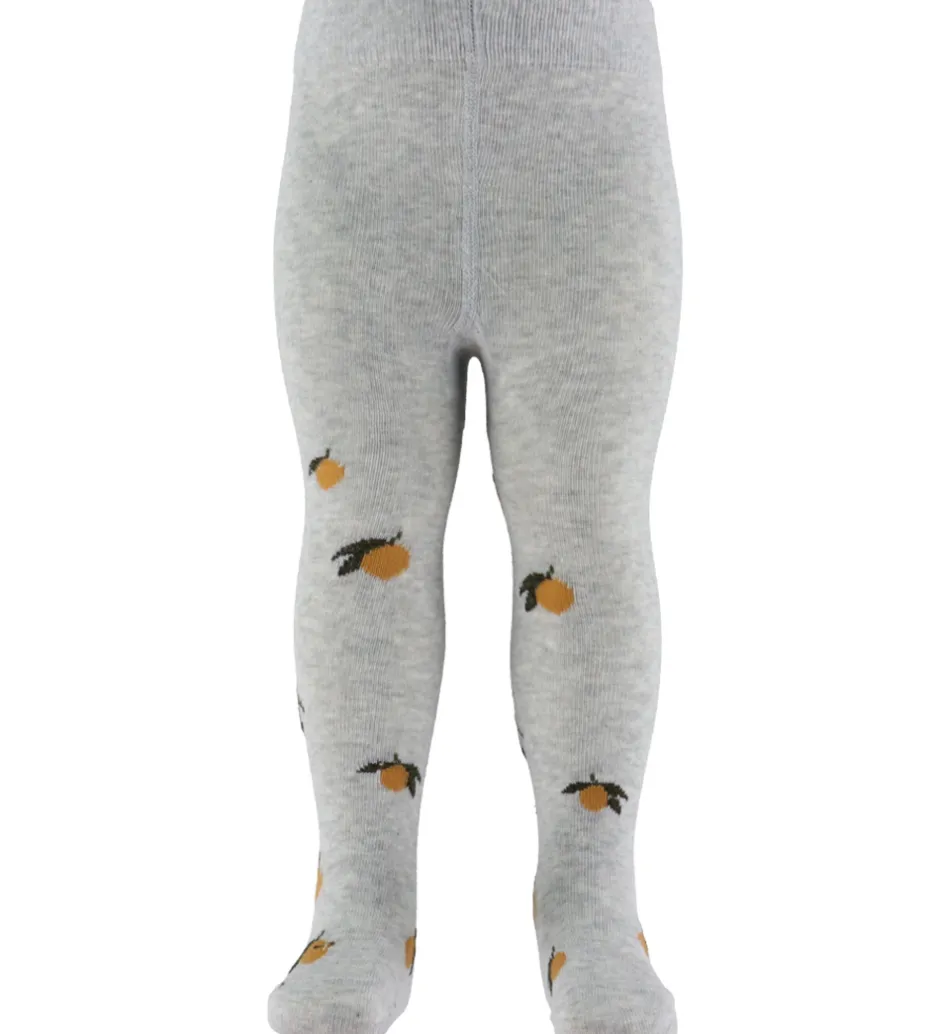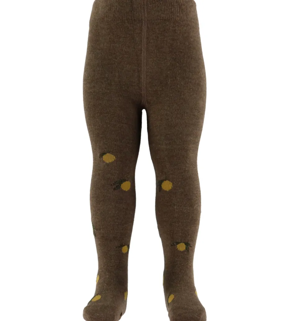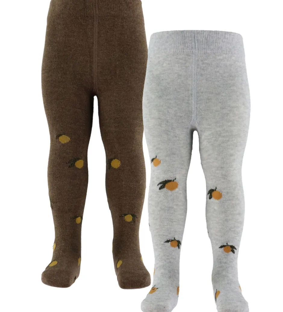 Smukke Konges Sløjd strømpebukser i en praktisk 2-pak. Den ene har en brun nuance med små, gule citronmotiver, mens den anden er i meleret grå med samme print. Begge par har en blød elastik i livet for en god pasform.