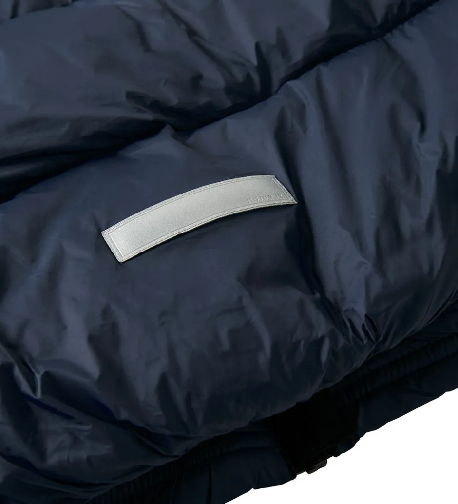 Lækker Name It dynevest i en flot kombination af sort og mørkeblå med et hvidt “OUTDOORS expedition” logo på brystet.