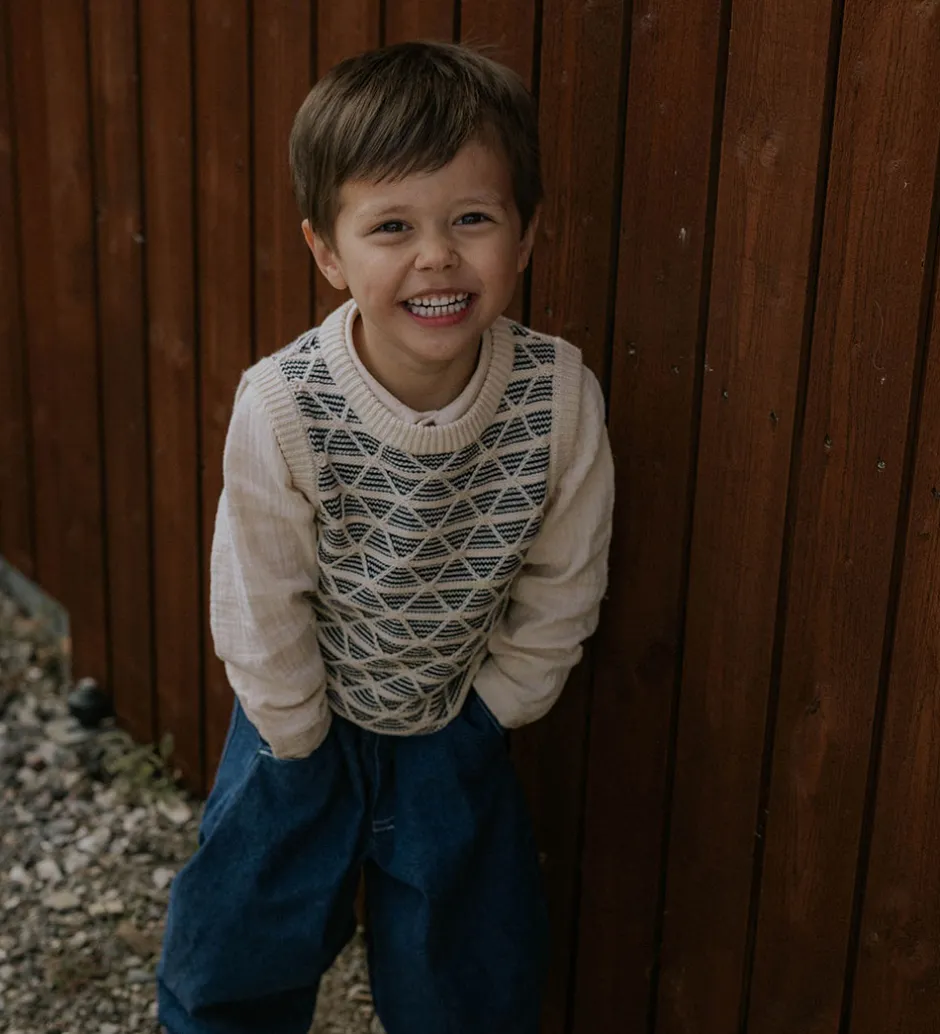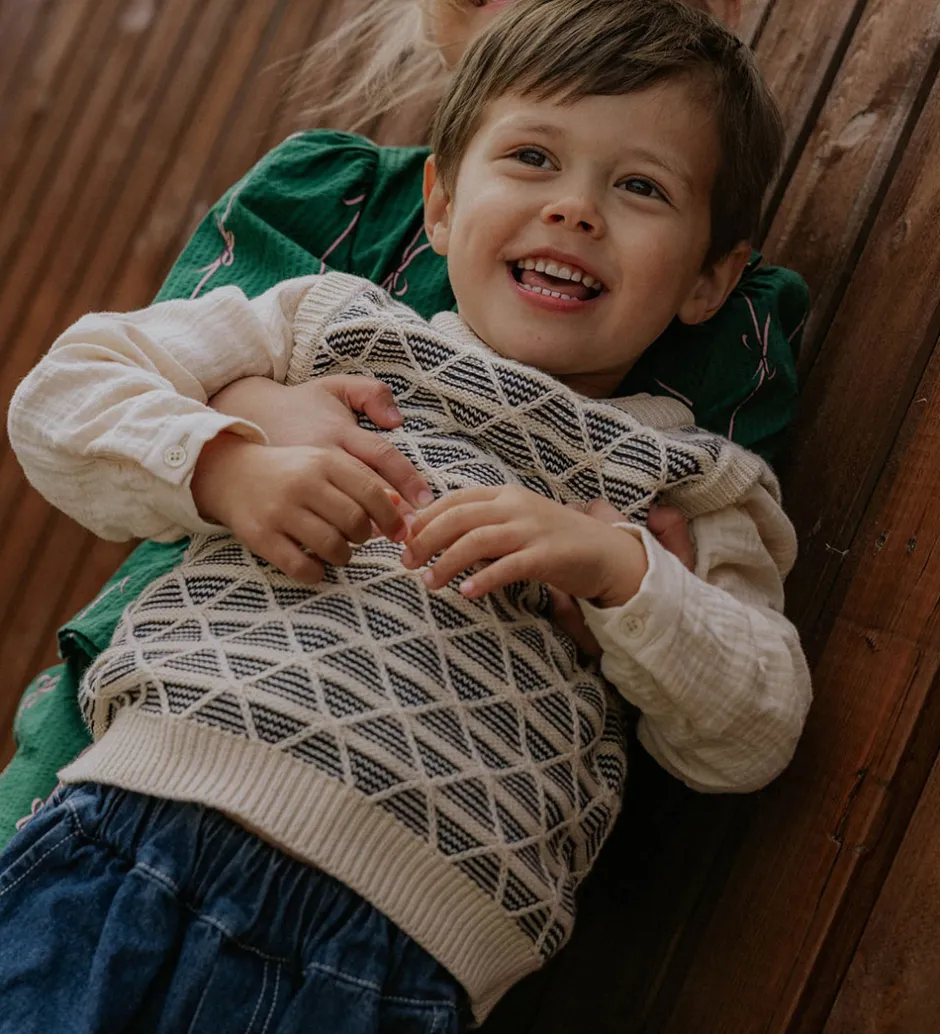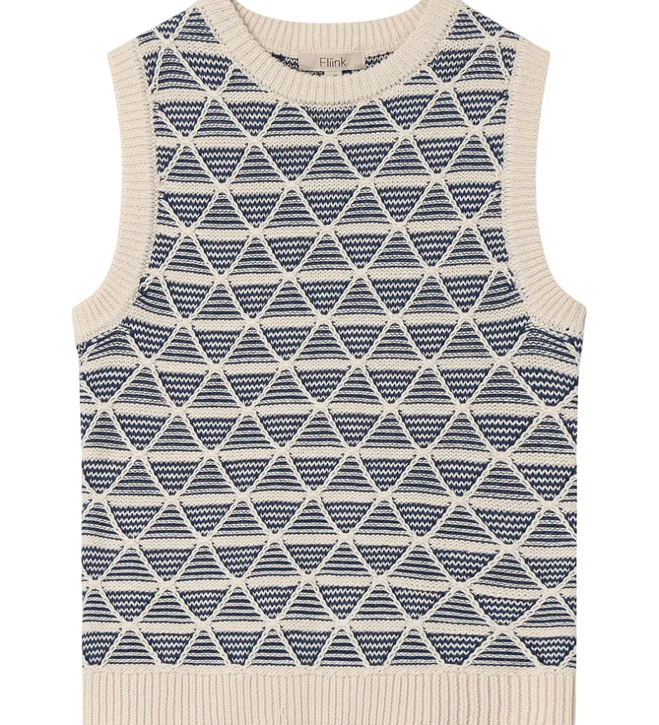 Stilfuld Fliink vest strikket i en lysebeige nuance med et unikt, geometrisk mønster. Fliink vesten har en behagelig pasform, der giver et moderne look. Perfekt til at tilføje et strejf af elegance.
