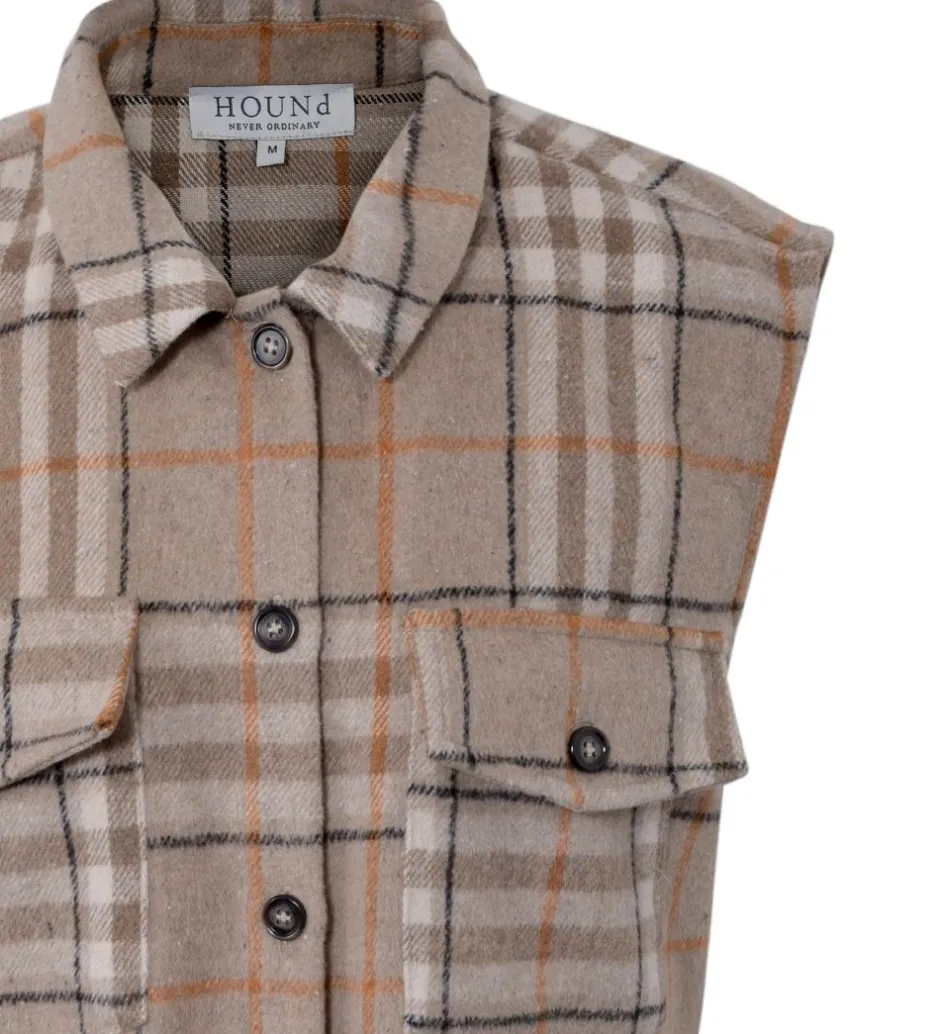 Flot Hound vest i sandfarvet med smarte tern i sorte, hvide og brune nuancer.