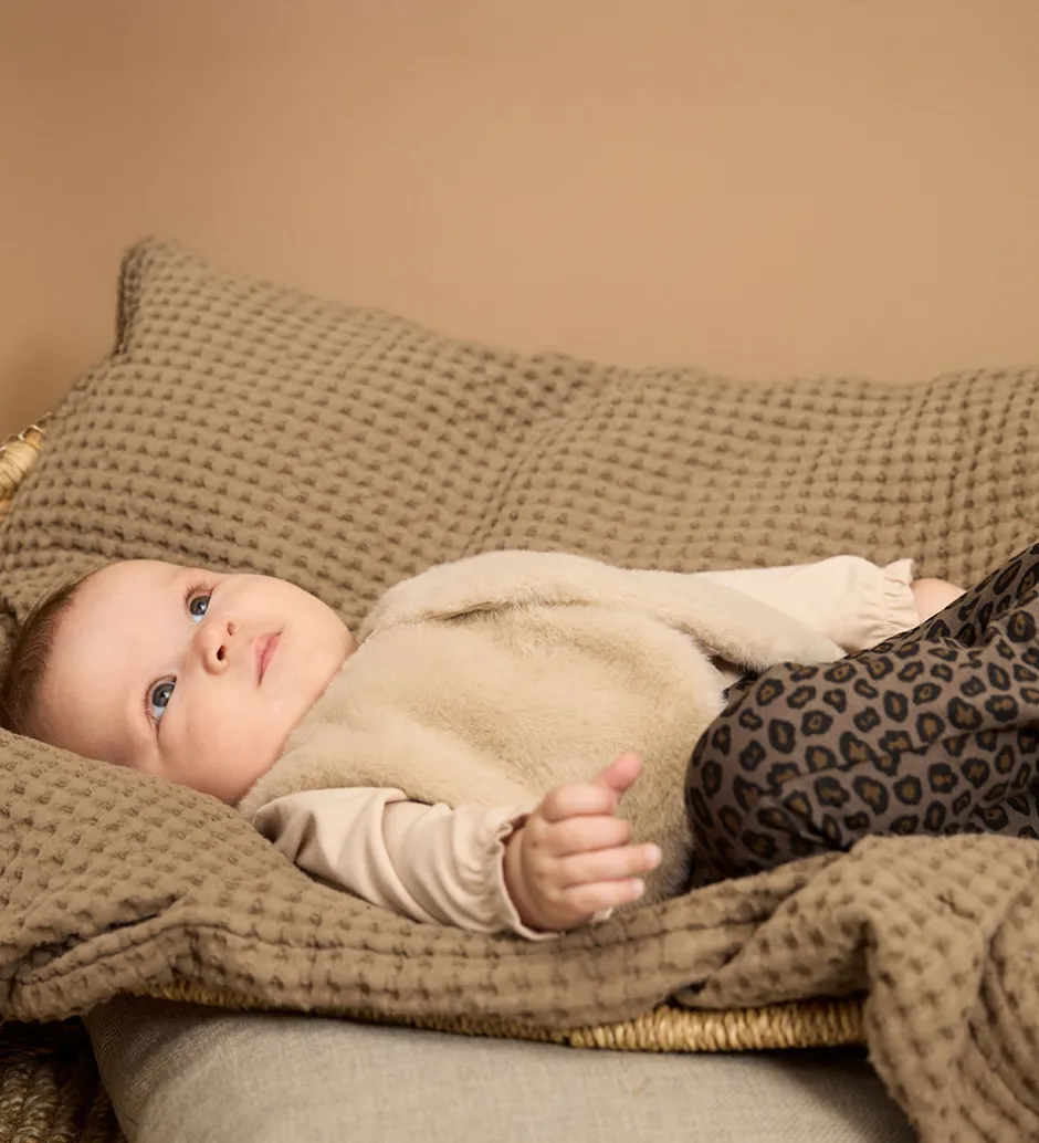 Blød Minymo vest i lys beige plys, som ligner imiteret pels.
