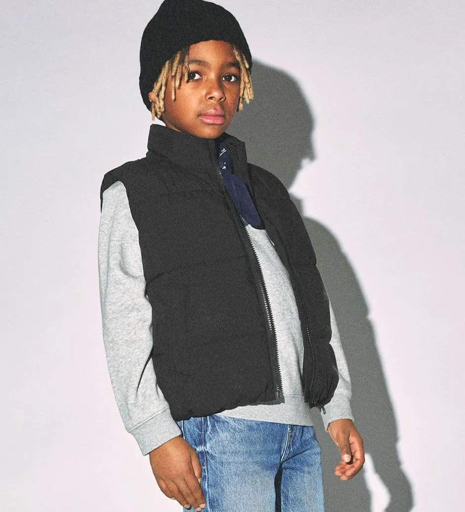 Skøn Name It dynevest i sort med vandrette syninger og et lille logo på venstre bryst.