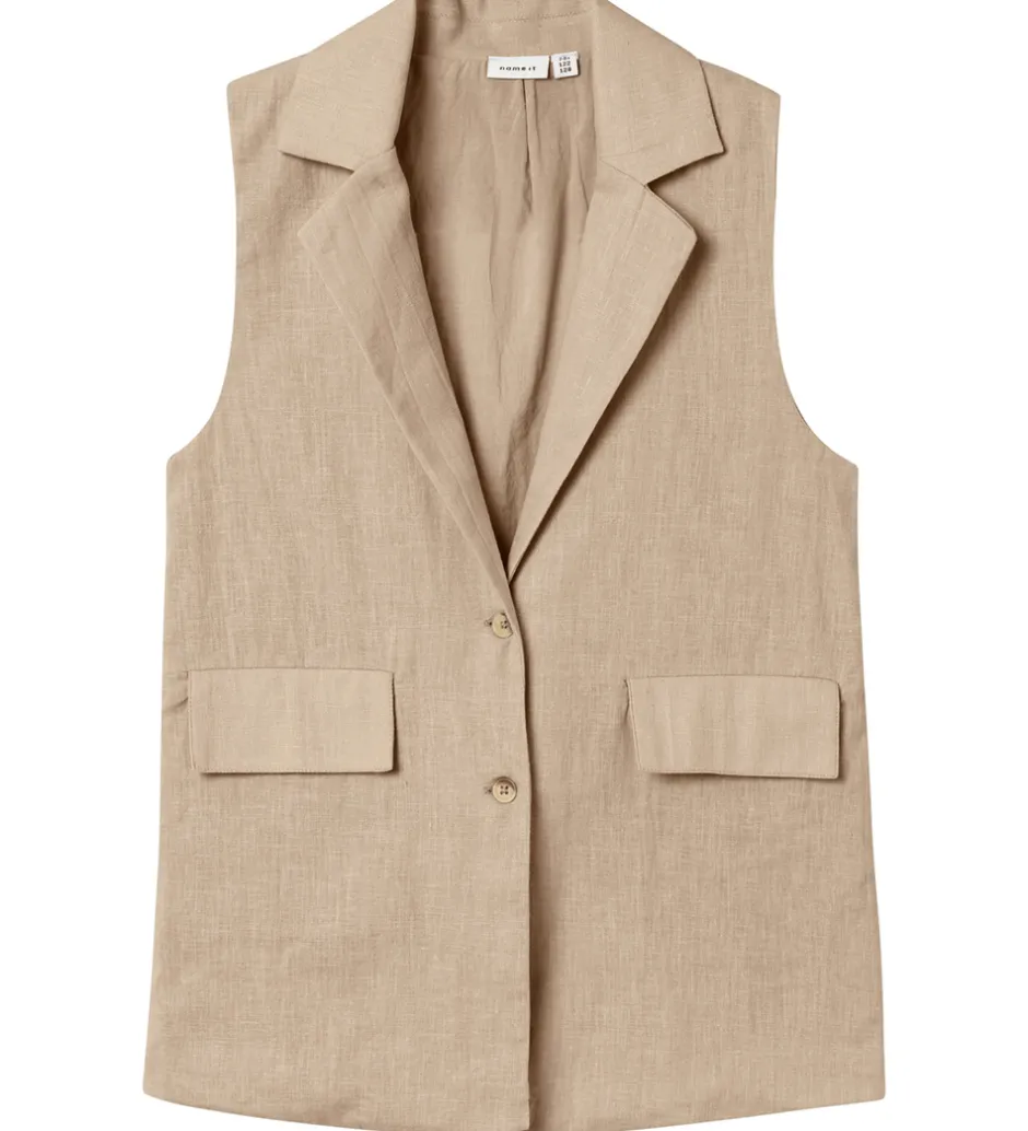 Model: NkfFalinnen Waistcoat, Style: 13227398, Farve: Humus