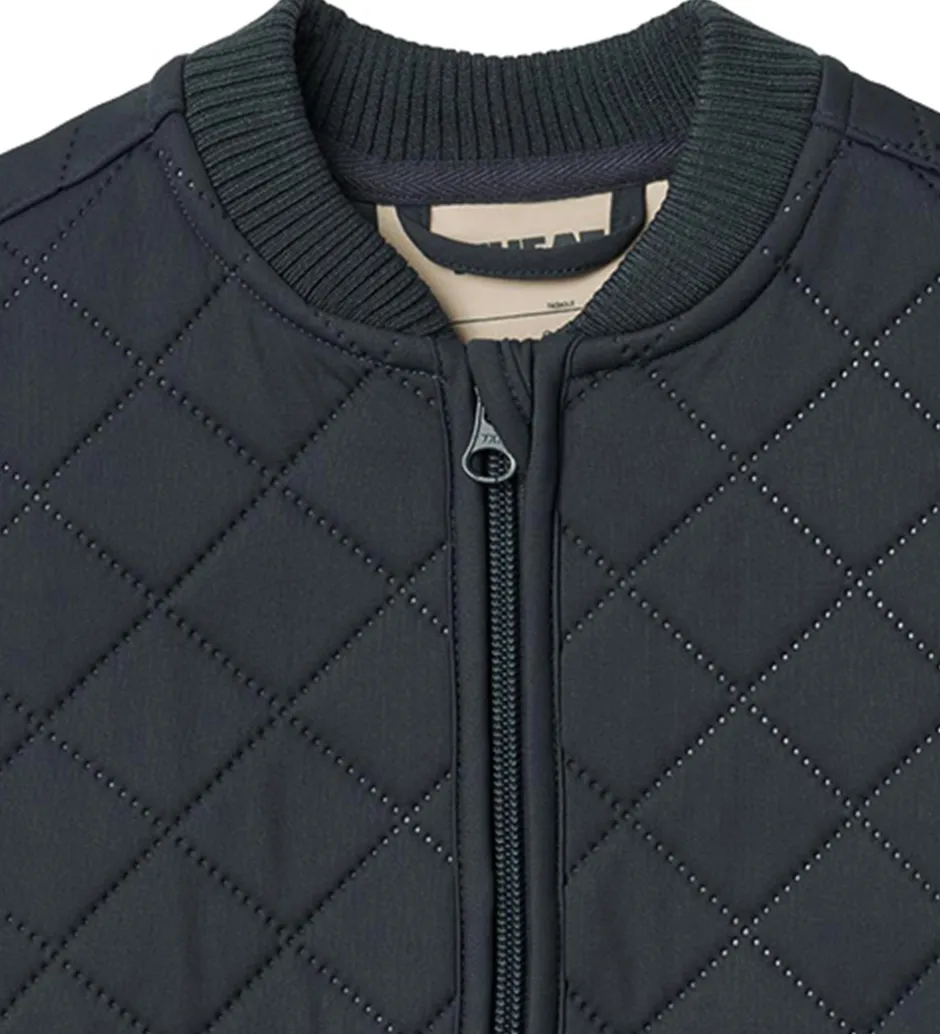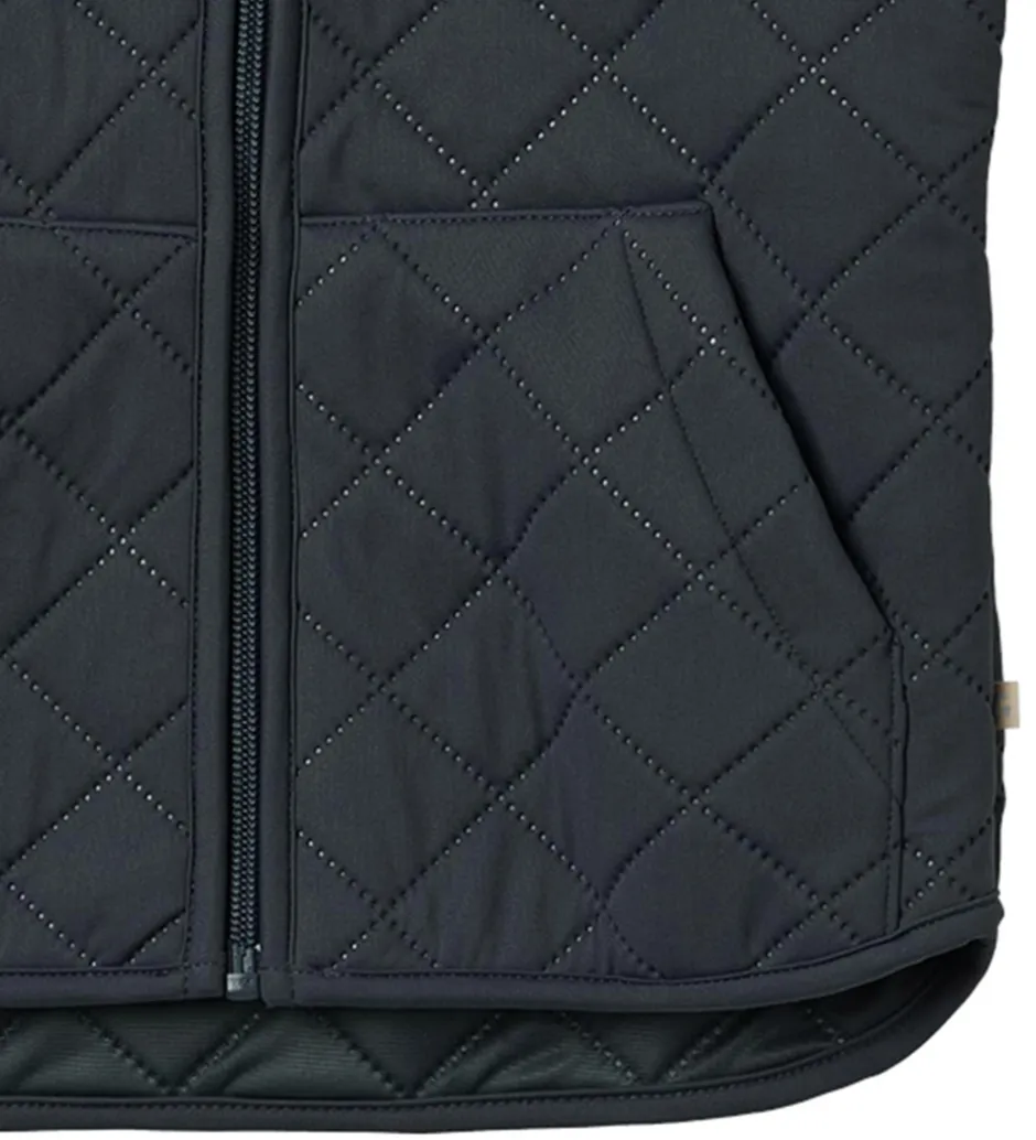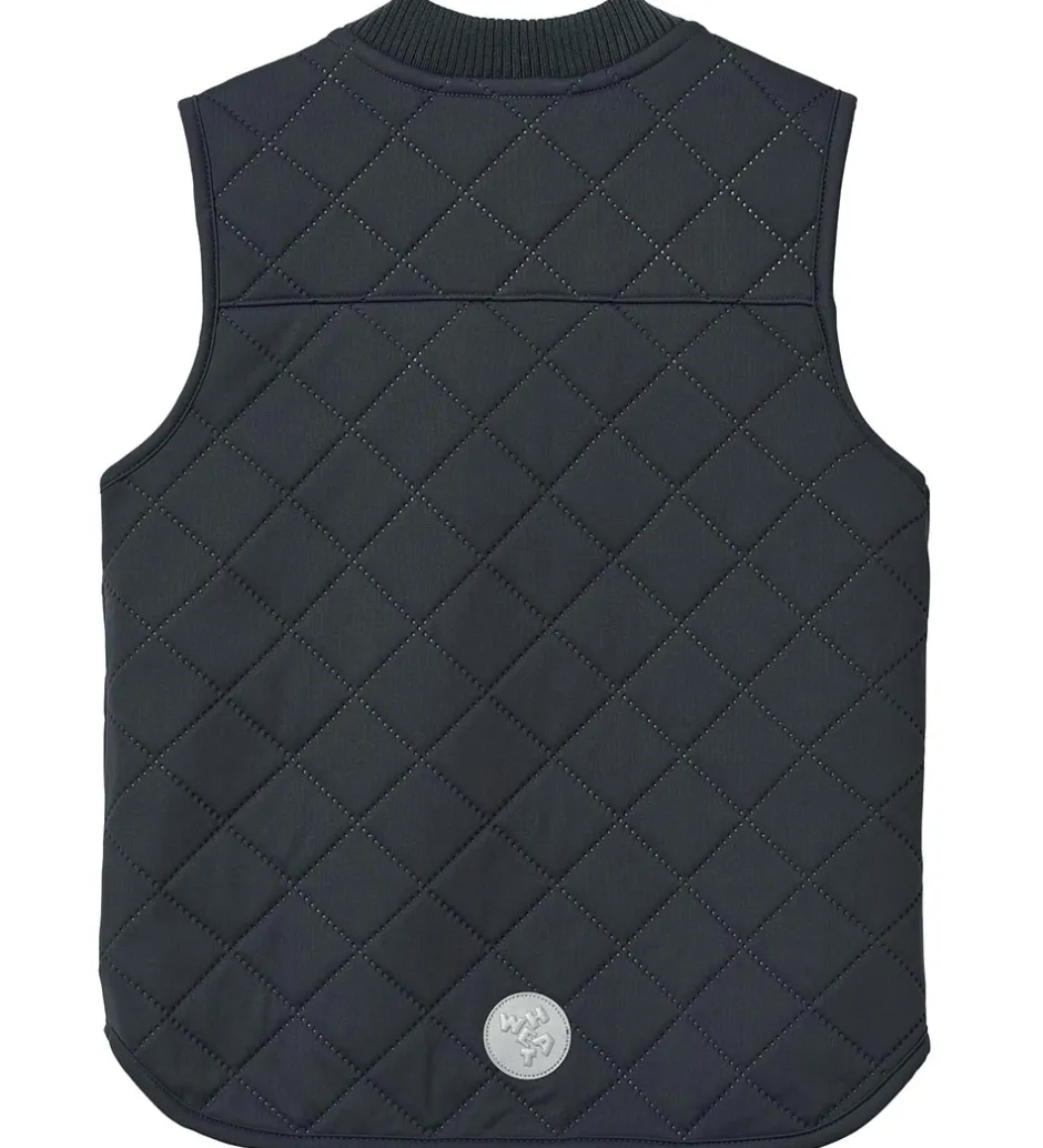 Pæn Wheat termovest i navyblå med en quiltet struktur.