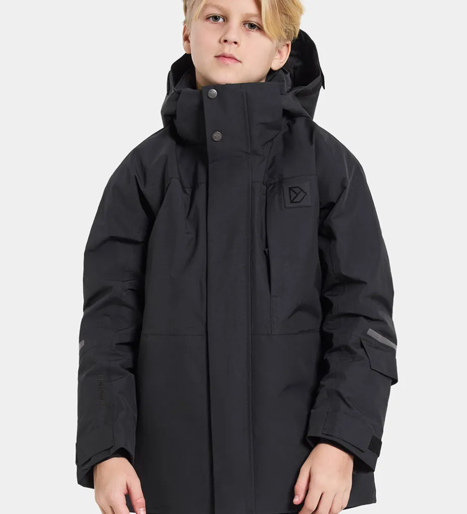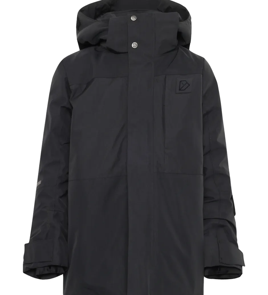 Sej Didriksons vinterjakke i sort. Vinterjakken er med diskrete logoer og refleksdetaljer.